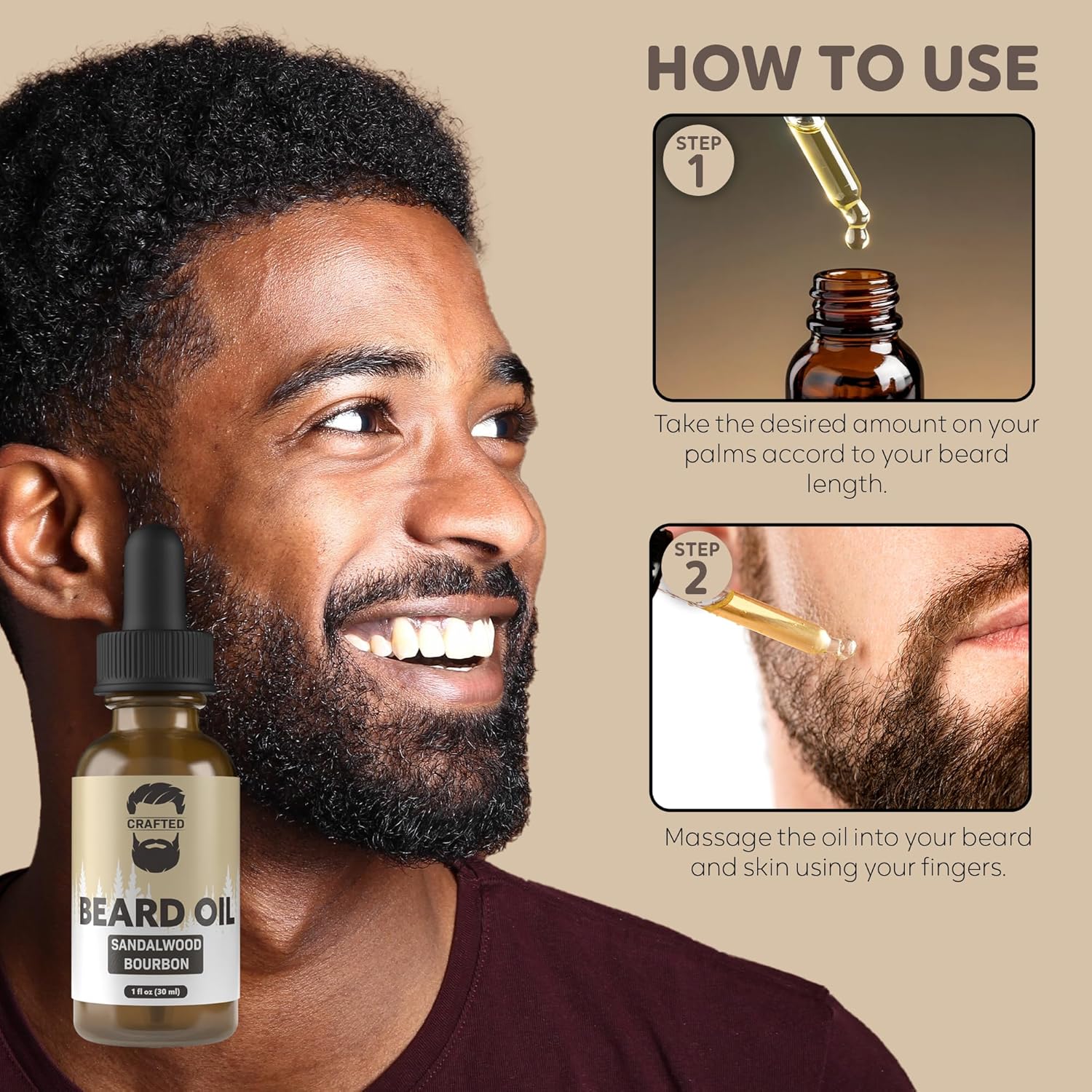 Crafted Beards Beard Oil Beard Oil Conditioner – Leave Your Beard Feeling Amazing – All Natural Ingredients – No Residue – Mustache Oil – 1oz – Made in the USA (Sandalwood Bourbon)