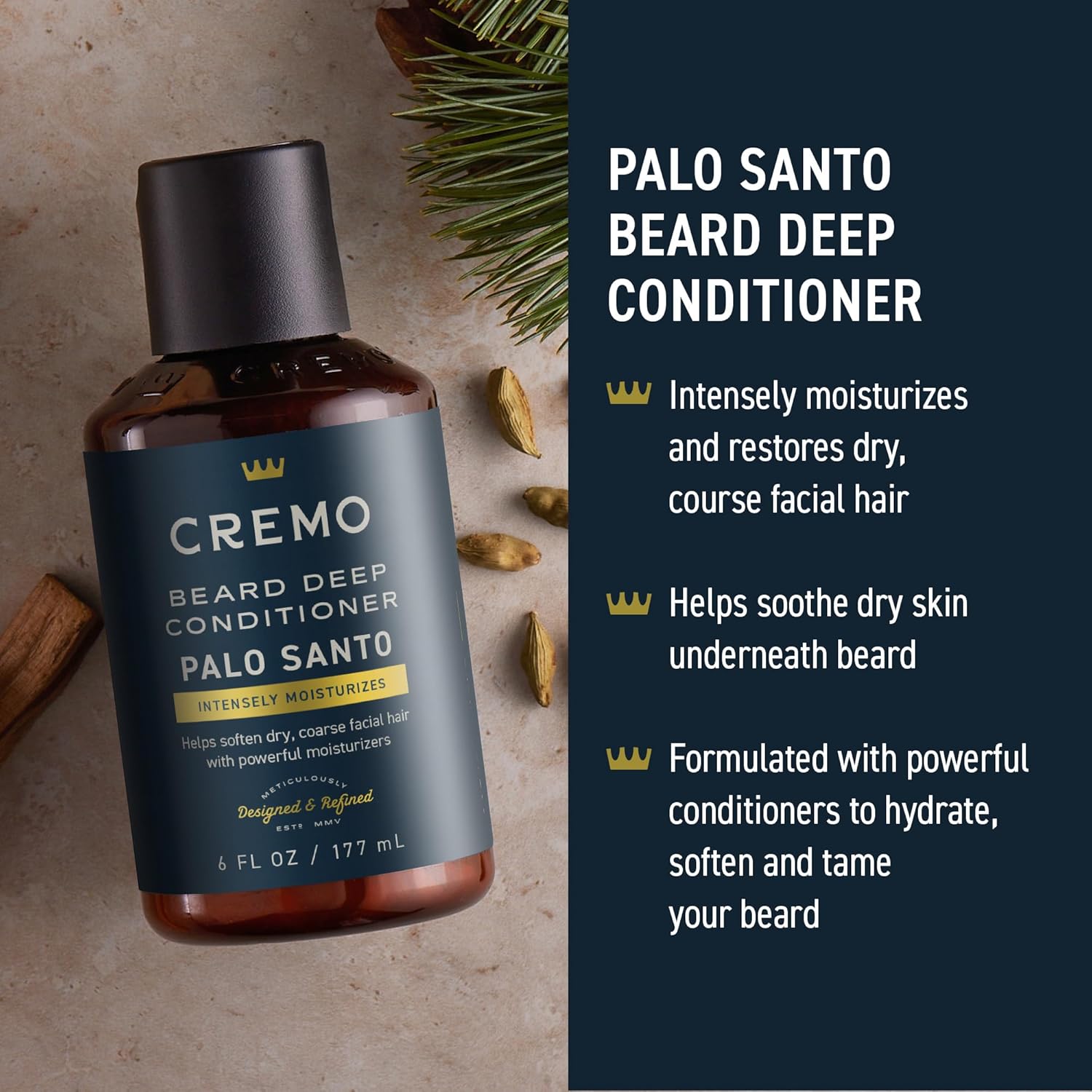 Upgrade your beard grooming routine with the Cremo Palo Santo Beard Care Kit, featuring a 2 in 1 Beard Wash & Softener, Beard Deep Conditioner, and Beard Oil all in one convenient package. This thoughtfully curated kit is designed to clean, condition, and moisturize medium to long beard hair, leaving it soft, manageable, and free of greasy residue. With Cremo’s signature Palo Santo fragrance, this beard grooming kit for men is a must-have for anyone looking to elevate their grooming game.