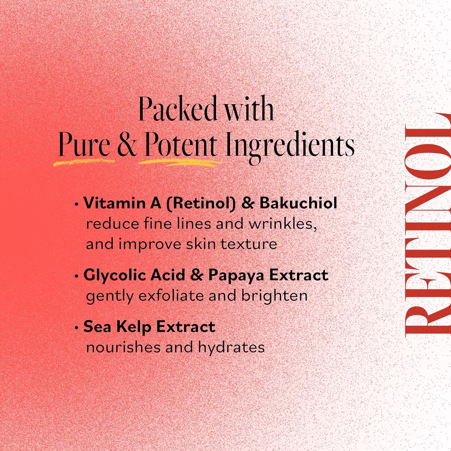 – Contains Vitamin A and Glycolic Acid to encourage surface cell renewal