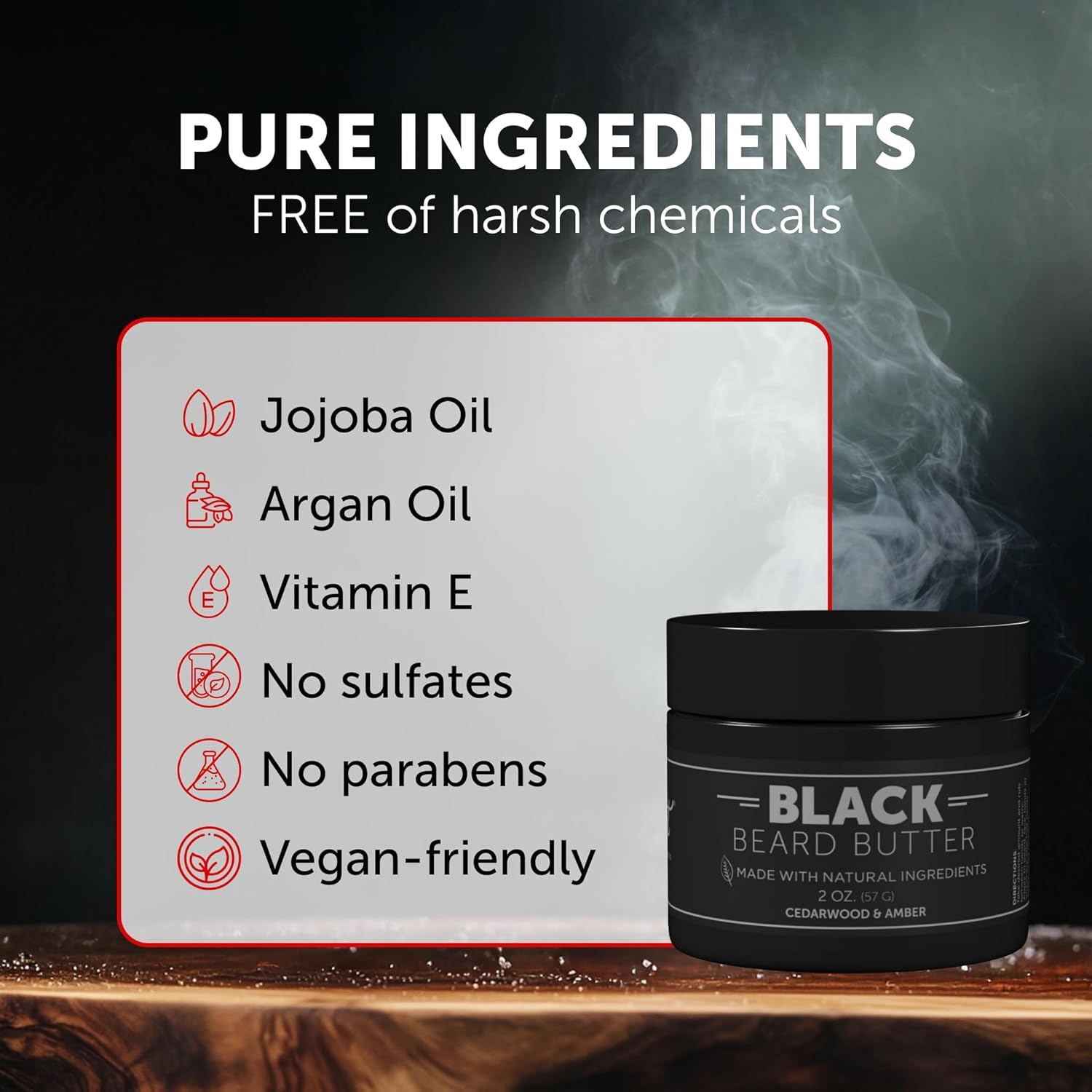 In terms of styling, this beard butter tames flyaways effortlessly, giving you a well-groomed and polished look. The sophisticated black scent of amber, cedarwood, and a subtle sweetness adds a bold yet smooth fragrance that will have you feeling confident all day long.