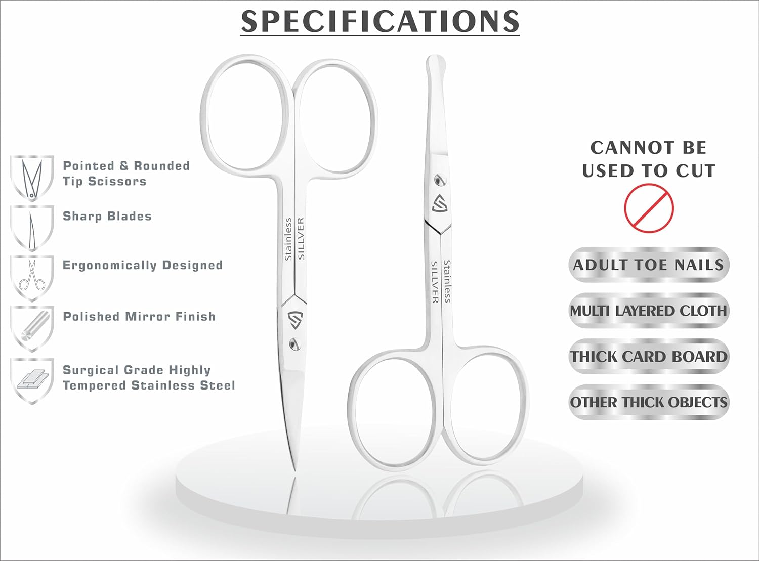 SHARPENING;-Sharp cutting edges with rounded and curved tips offering accuracy and can help trim small parts like nose hair, ear