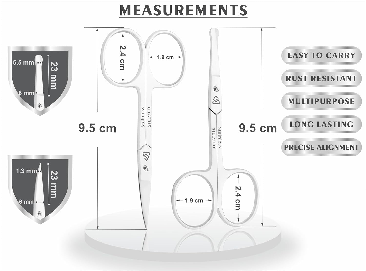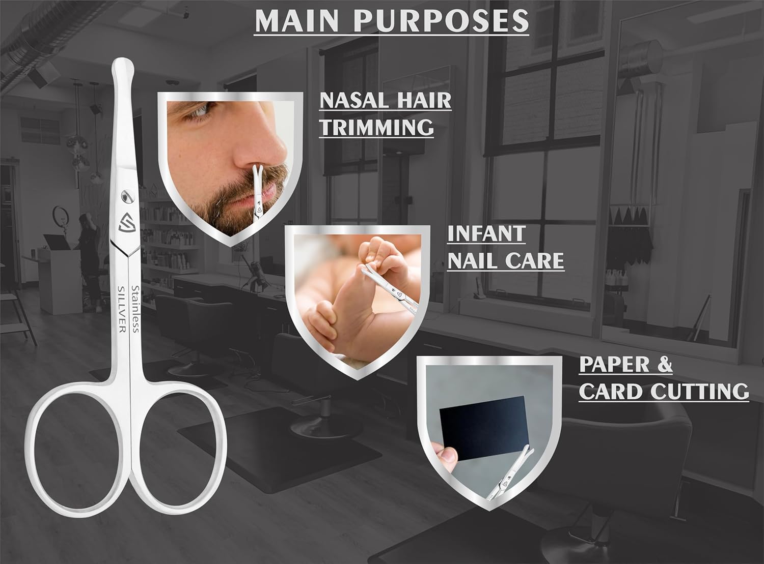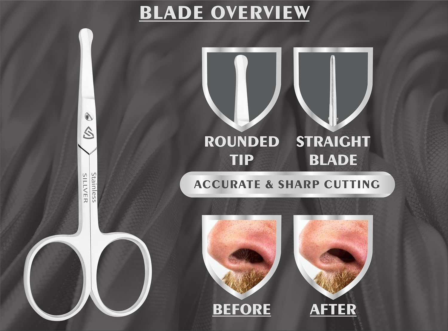 – Multipurpose scissors for trimming facial hair, mustache, nose, ear hair, beard, upper lip hair, and more