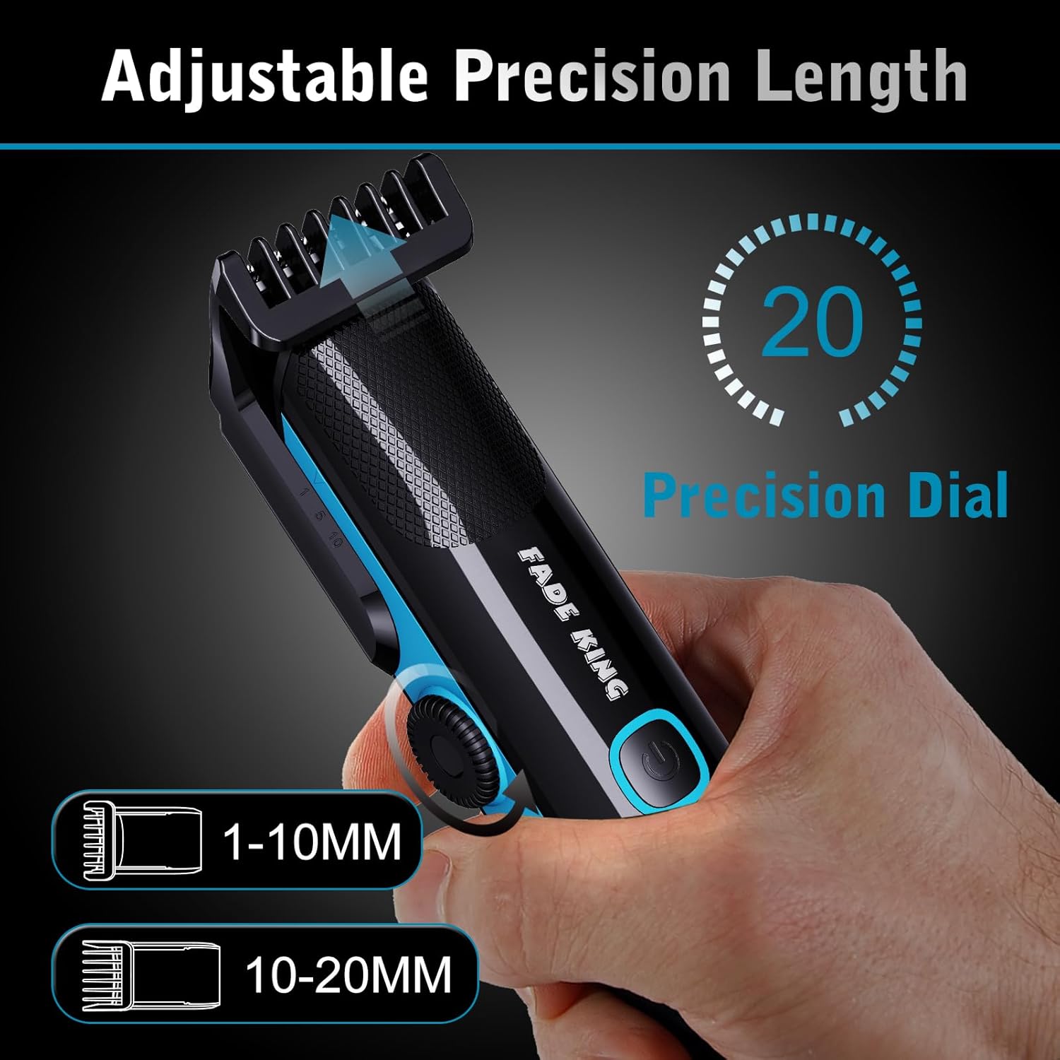 – Two adjustable combs for precise length control (1–10 mm & 10–20 mm) and a zoom wheel for instant adjustments