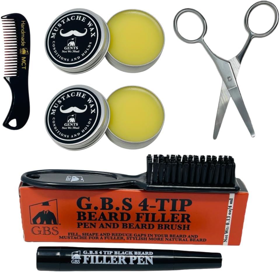 Are you looking to take your mustache and beard game to the next level? Look no further than the G.B.S Mustache Wax & Grooming Kit. This 3-in-1 set is designed for clean styling, detailing, and beard enhancement, giving you the tools you need to achieve the perfect look every time. With fragrance-free mustache wax, a black beard filler pen, a dual-sided mustache comb, and stainless steel scissors, this kit has everything you need for professional grooming at home.