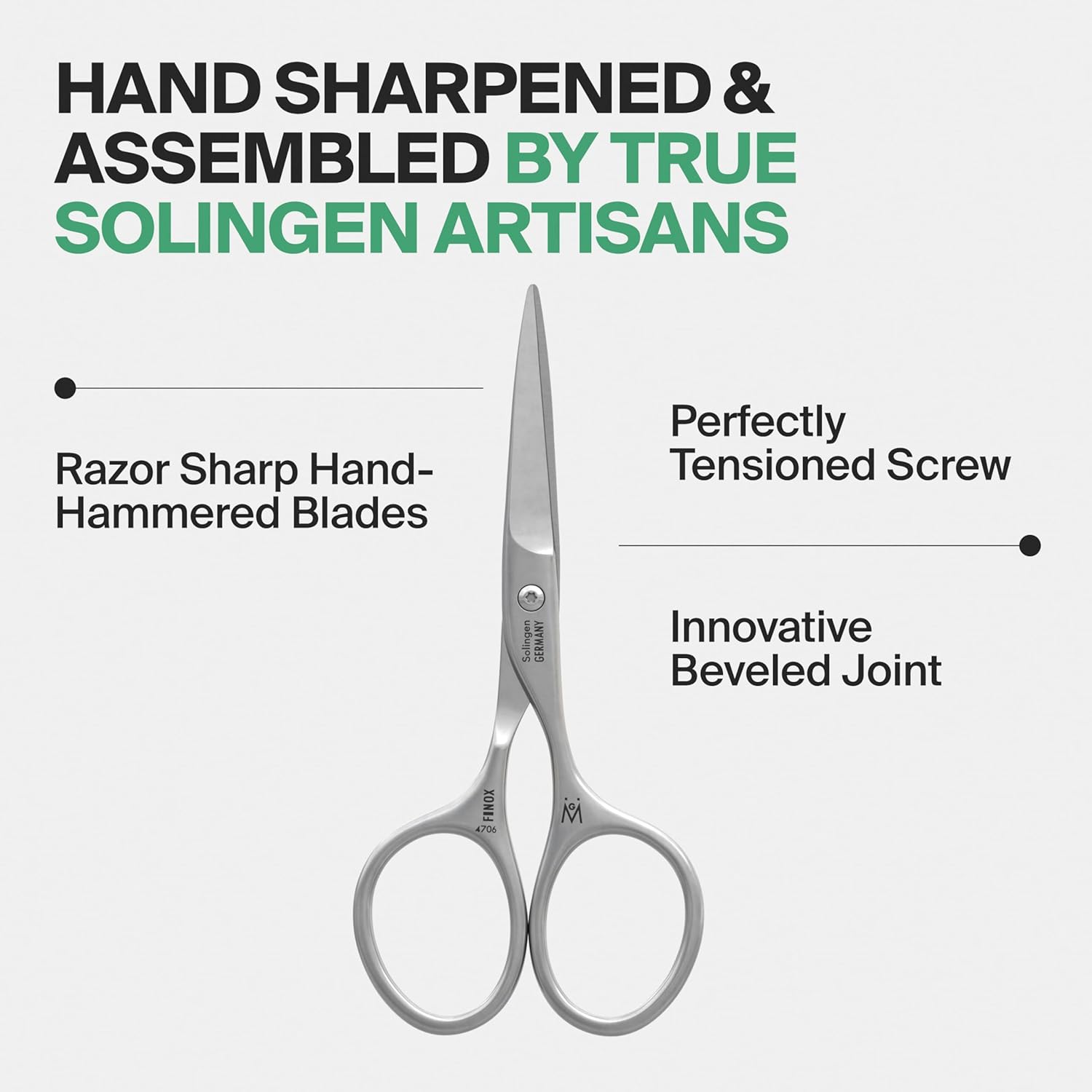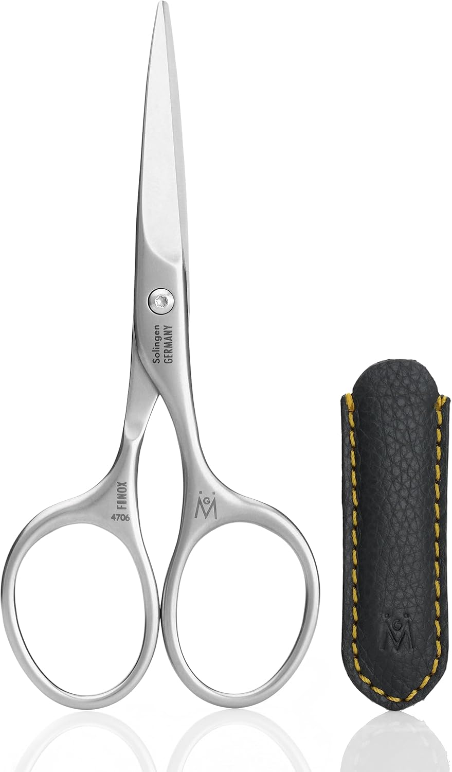 Home Mustache Scissors GERMANIKURE Beard and Mustache Scissors – FINOX Stainless Steel Professional Manicure Tools in Leather Case – Ethically Made in Solingen Germany – 4706
