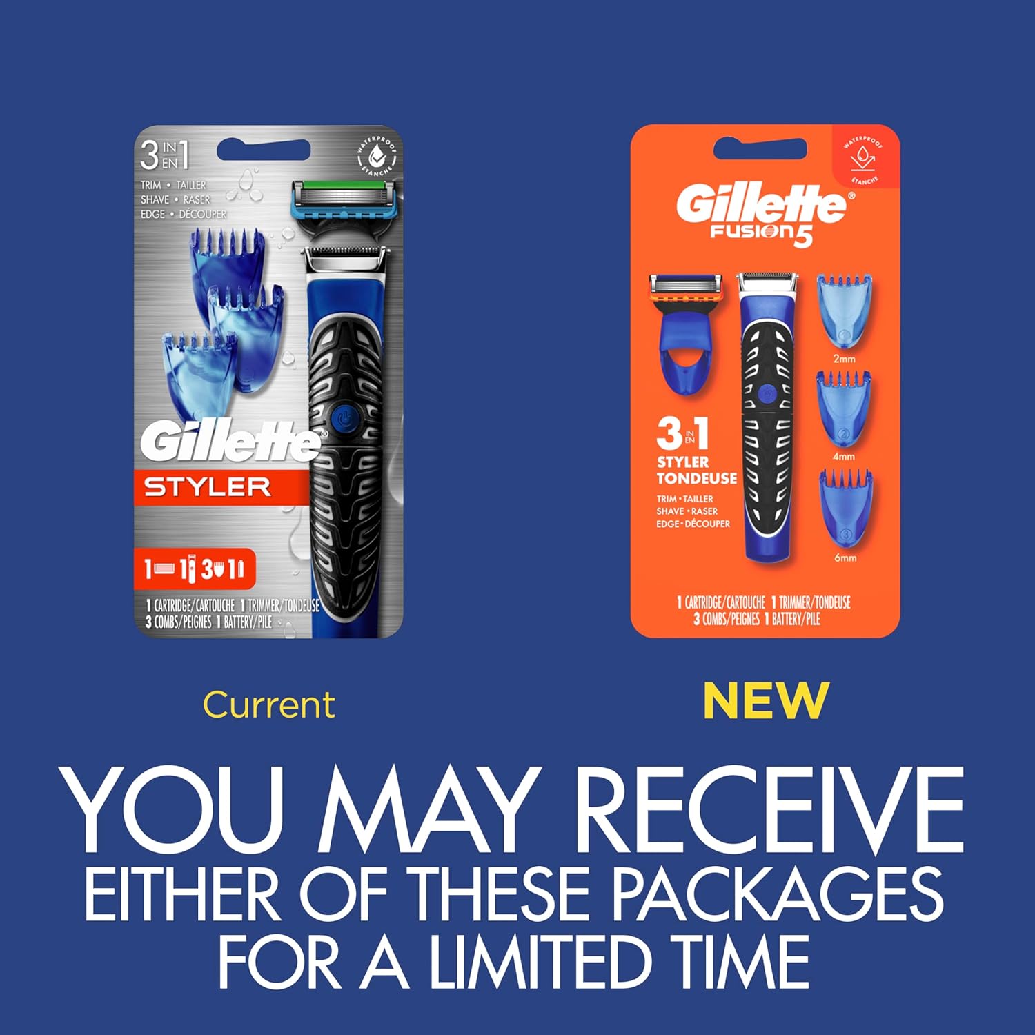 Gillette Styler: Beard Trimmer, Men’s Razor & Edger, All Purpose Styler, All-in-one Tool, Shave, Trim & Edge, Waterproof, Fusion Razors for Men / Styler, with 3 Comb Attachments