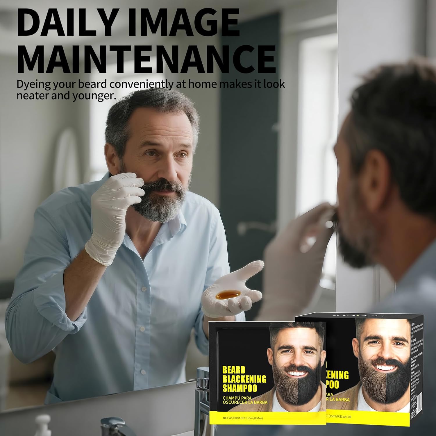 The Beard Blackening Shampoo delivers on its promises of instant and effortless coloring. The rich black color lasts for weeks, saving you time and money on frequent touch-ups. The formula is gentle on the skin and leaves the beard feeling soft and healthy. The pre-portioned packets make application a breeze, and the results are salon-quality without the salon price tag.
