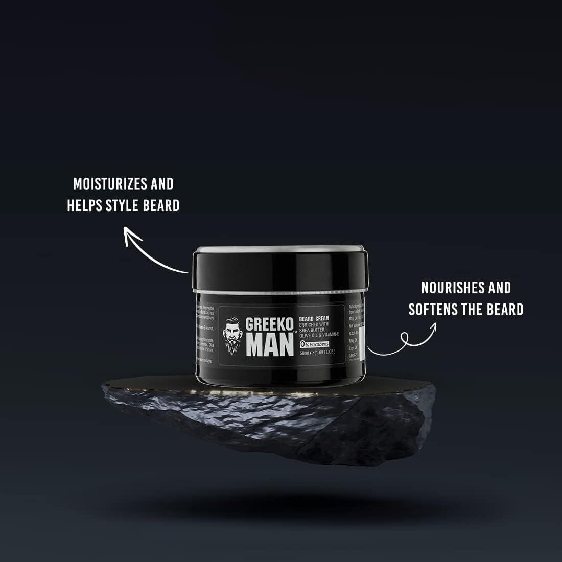 Greeko Man Beard Cream – Natural Beard Moisturizer with Shea Butter, Olive Oil & Vitamin E | Lightweight Non-Greasy Beard Styling Cream for Growth, Softening, Conditioning & Daily Care – pack of 2