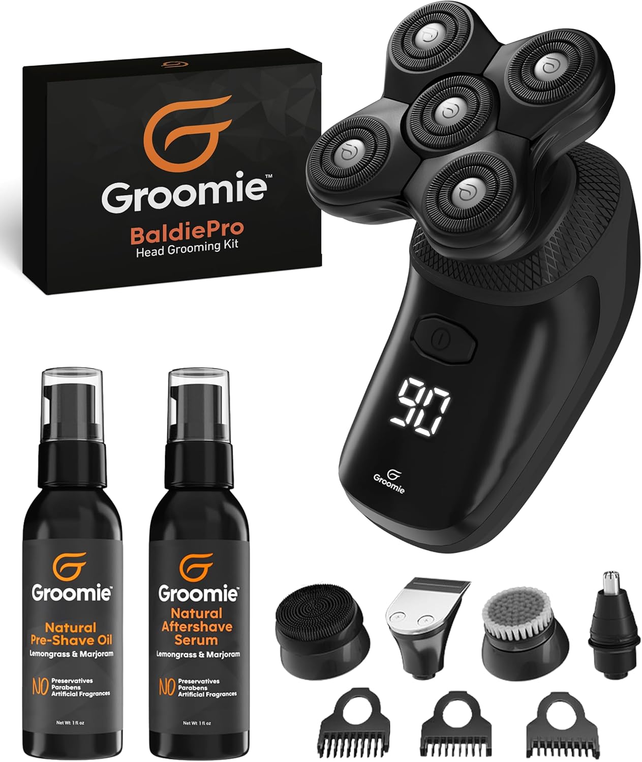 GROOMIE No Hair, Don’t Care Bundle – 5D BaldiePro Electric Head Shavers for Bald Men, Natural Pre-Shave Oil to Promote Close Shave, & Natural Aftershave Serum – Mens Head Shaver Kit w/Electric Razor
