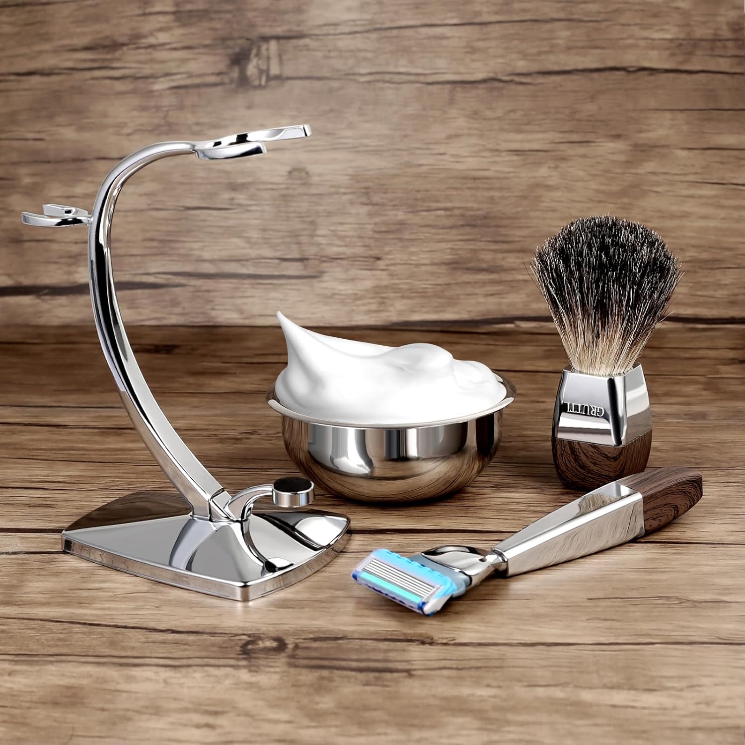 Experience the convenience and luxury of the GRUTTI All-in-One Fusion5 Shaving Set. Say goodbye to clutter and hello to a stylish and organized shaving station. Don’t miss out on this must-have grooming accessory – check it out on Amazon today!
