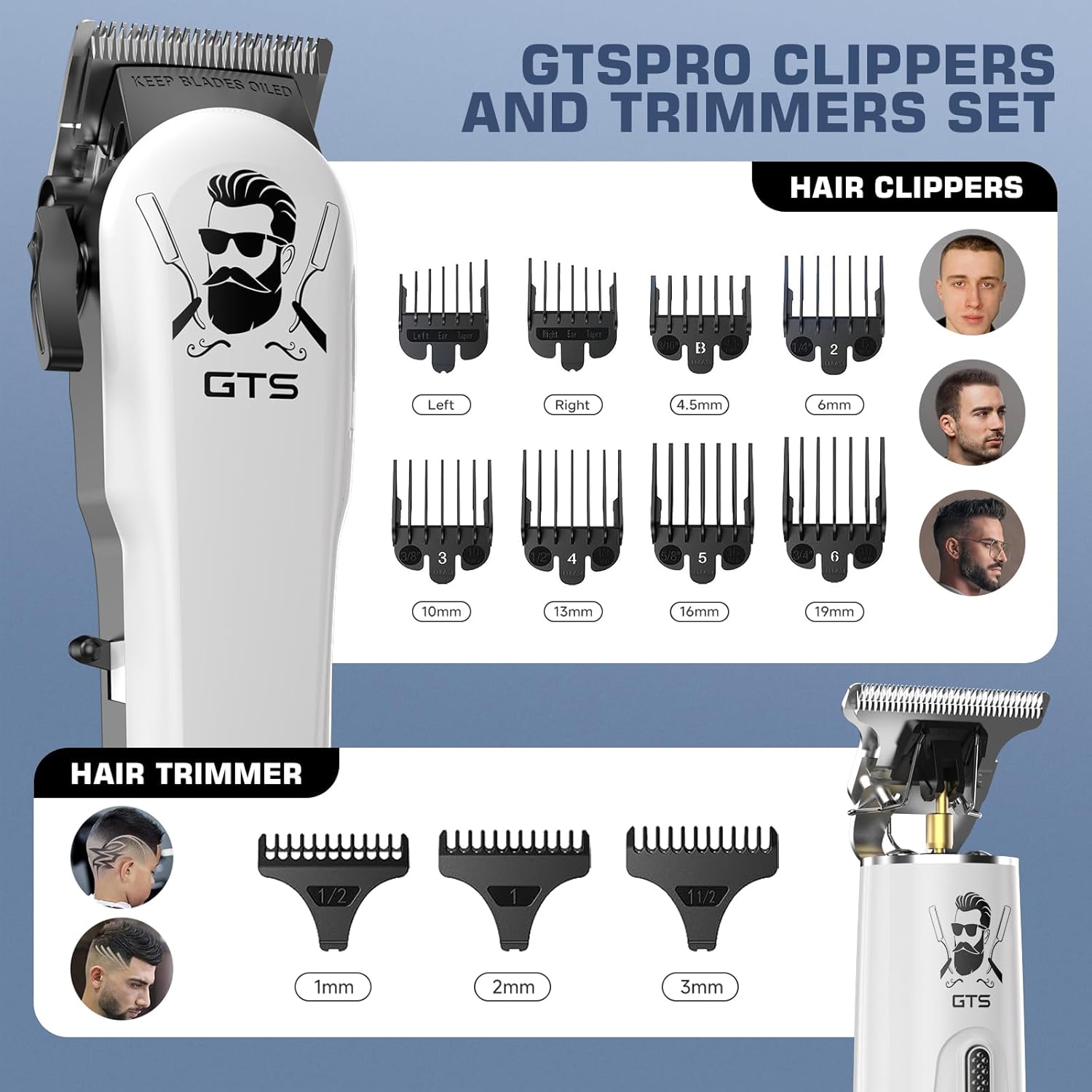 GTSPro Hair Clippers for Men, Clippers and Trimmers Set, Barber Clippers, Electric Hair Trimmer with Box, Gifts for Men White