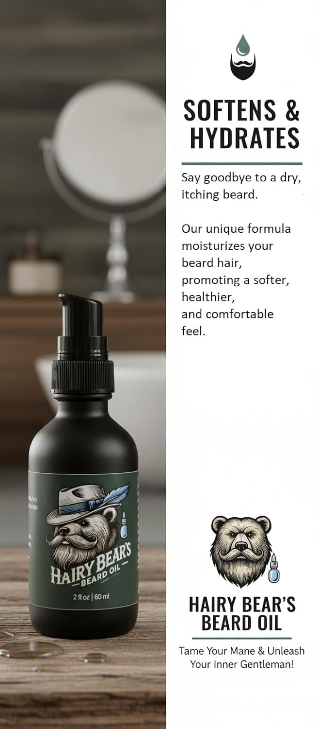Title: “Hairy Bear’s Beard Oil: Nourish, Soften, and Style Your Beard with Ease”