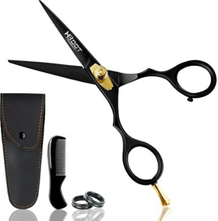 HB DOT Professional Beard and Mustache Scissors, Black 5.5? Beard Scissors of German Steel, Beard Scissors for Men Come with Carrying Pouch and Beard Comb, Beard Trimming Scissors for Home and Saloon