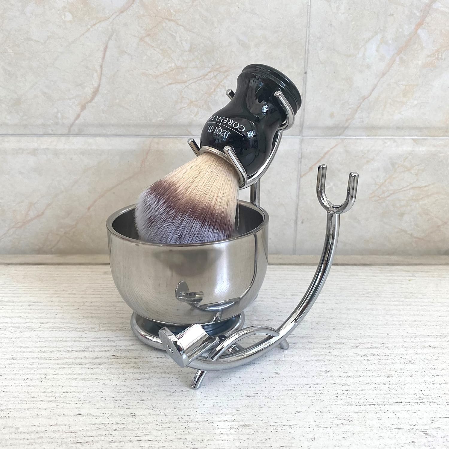Home Men's Shaving & Grooming Sets JEQUIL&CORENVEO Deluxe Shaving Kit for Men, 3pcs Shaving Set, Shaving Brush, Shaving Bowl, Razor & Brush Holder