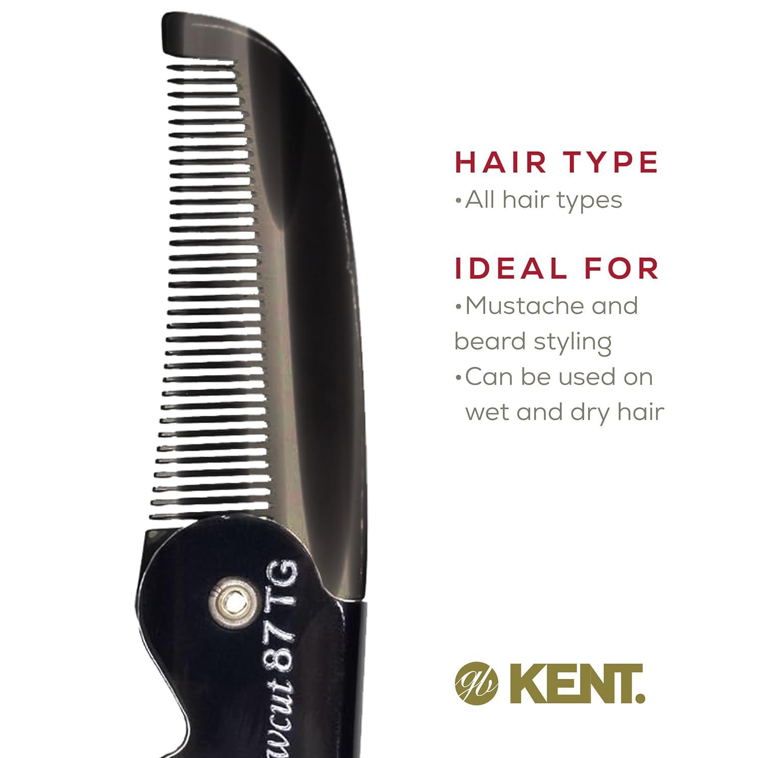 Home Beard & Mustache Combs Kent 87T Black Graphite Handmade Folding Pocket Comb for Men, Fine Tooth Hair Comb Straightener for Everyday Grooming Styling Hair, Beard or Mustache, Saw Cut Hand Polished, Made in England
