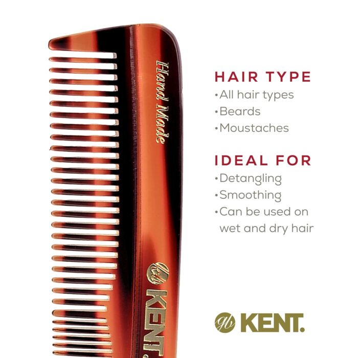 Kent R7T The Apsley Fine Tooth / Wide Tooth Comb for Beard Care and Mustache Comb – Pocket Comb Hair and Beard Comb – Kent Comb for Travel Kit – Hair Combs for Men and Hair Combs for Women Beard Kit