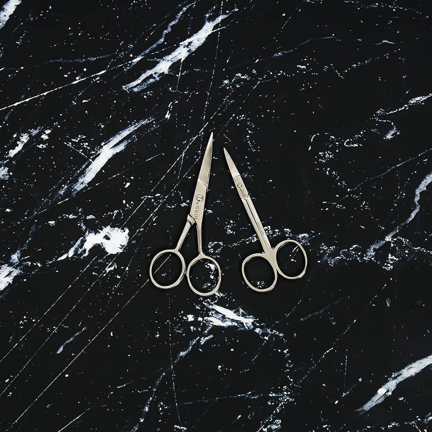 Facial Hair Small Grooming Scissors For Men Women – Eyebrow, Nose Hair, Mustache, Beard, Eyelashes, Ear Trimming Kit – Curved and Rounded Safety Tip Clippers For Hair Cutting – 2PCS Silver