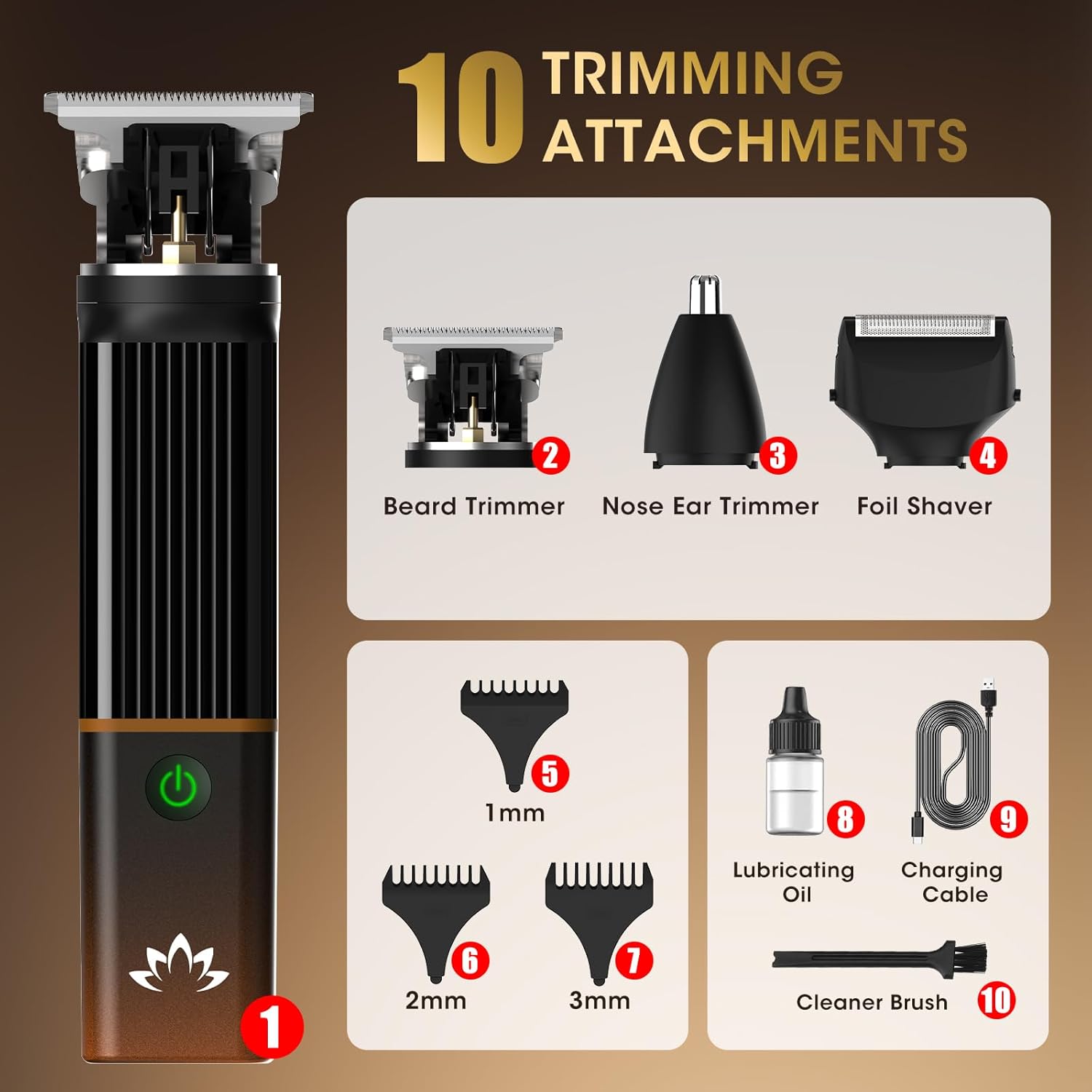 Cordless Hair & Beard Trimmer with 4 Guide Combs,Rechargeable T-Blade Hair Edgers Hair Clippers for Zero Gapped Haircut,Professional Electric Hair Trimmer Gifts for Men & Fathers Day,Bronze