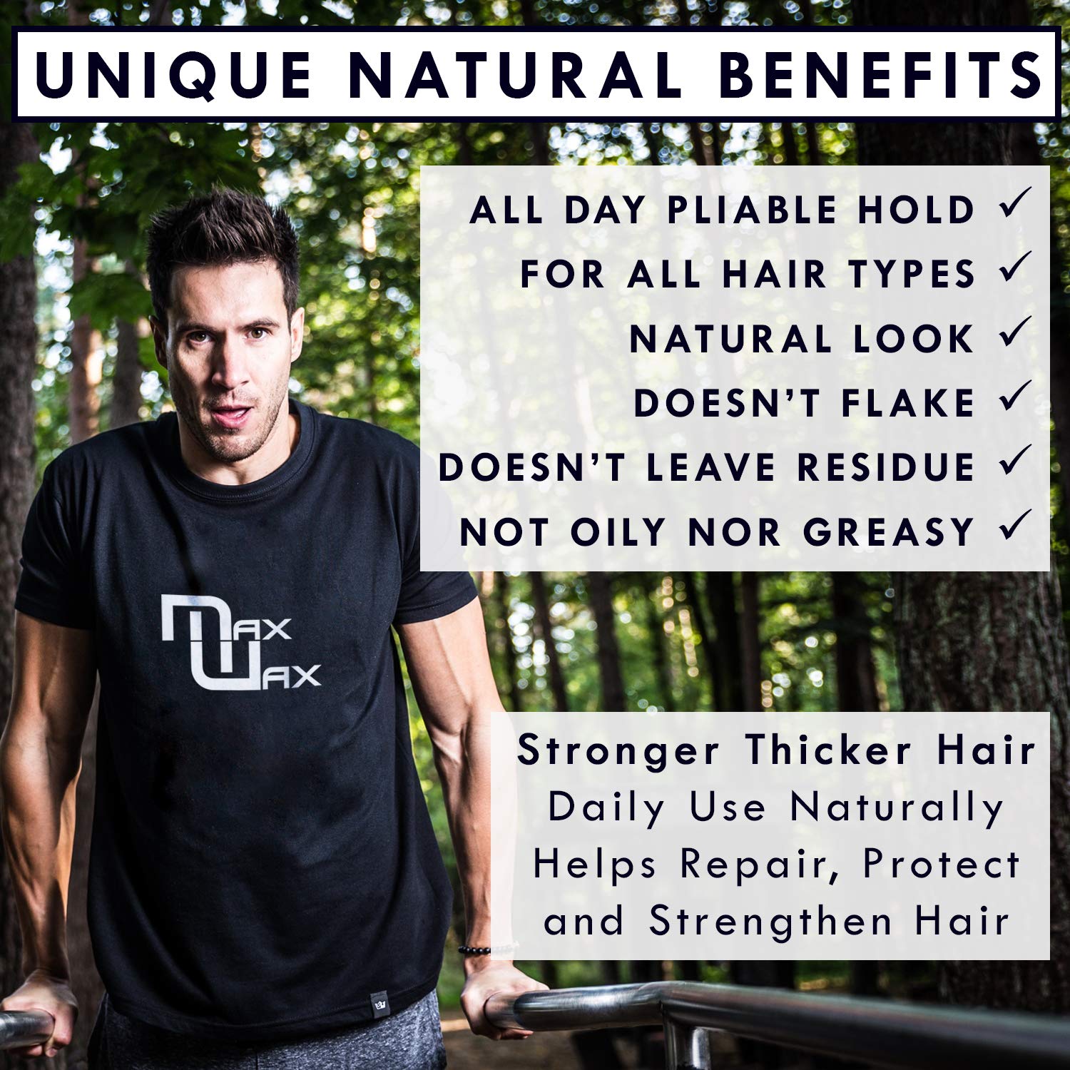 MaxWax Natural Hair Styling Wax With Hair Treatment. Helps Repair, Thicken, Strengthen, Grow and Protect Hair. Natural Ingredients and Vitamins. Matte and Shine Looks. Women and Men