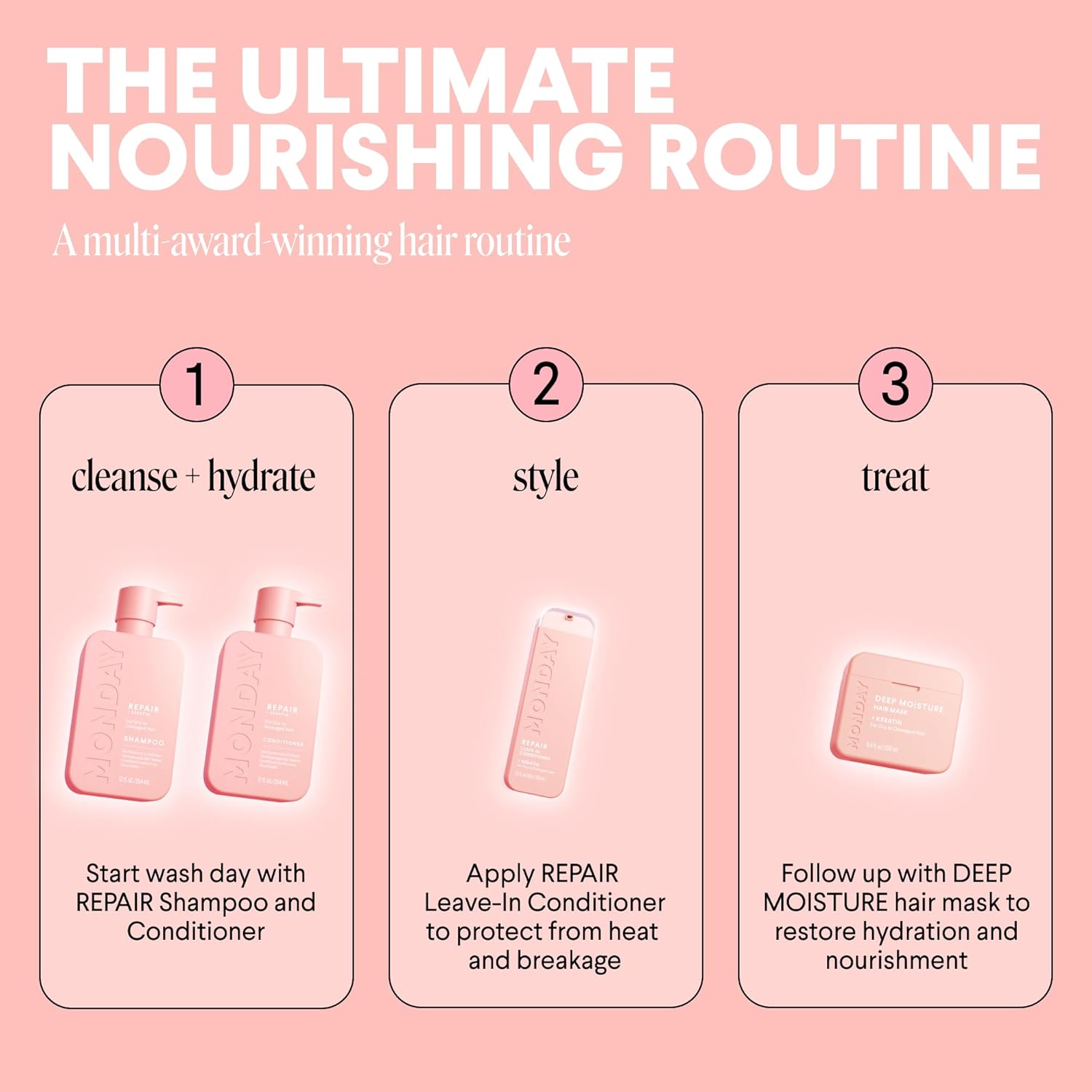 MONDAY HAIRCARE Repair Shampoo and Conditioner Set (12 oz) For Dry to Damaged Hair Made with Keratin, Coconut Oil, Shea Butter, and Vitamin E