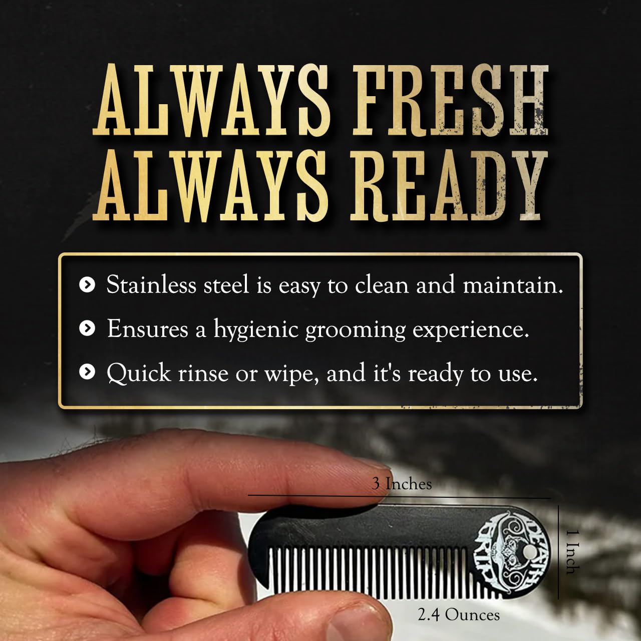 The Vintage Grooming Co. Mustache & Beard Pocket Comb is a handy grooming tool designed for men who want to keep their facial hair looking sharp and well-maintained at all times. With its compact size and durable metal construction, this comb is perfect for styling handlebar mustaches, beards, goatees, and sideburns on the fly.
