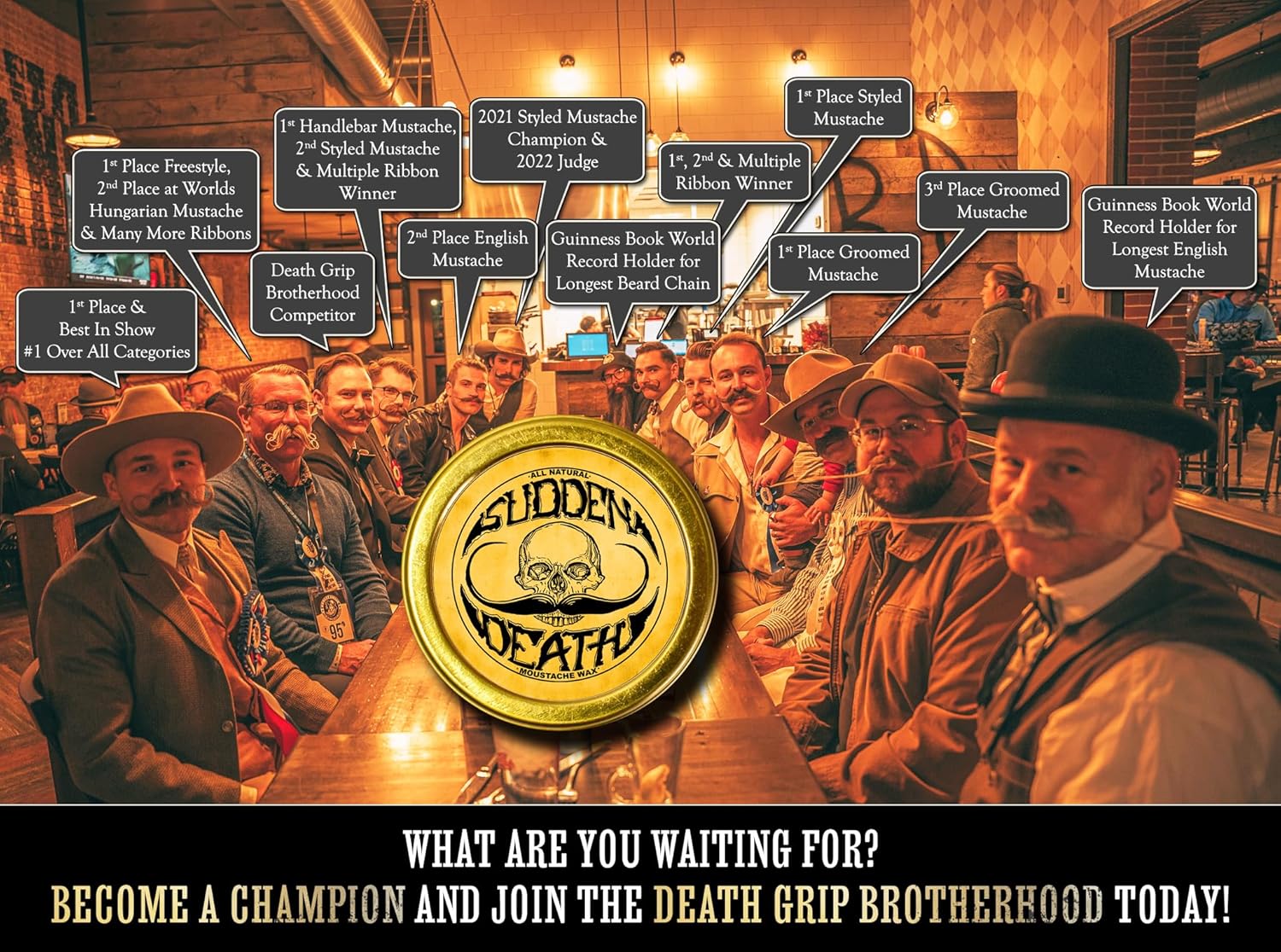 If you’re ready to take your mustache grooming to the next level, look no further than the Sudden Death & Platinum Death Grip Mustache Grooming Kit. With its strong hold wax and precision comb, you’ll have everything you need to keep your mustache looking sharp and stylish. Get yours today and transform your mustache grooming routine!