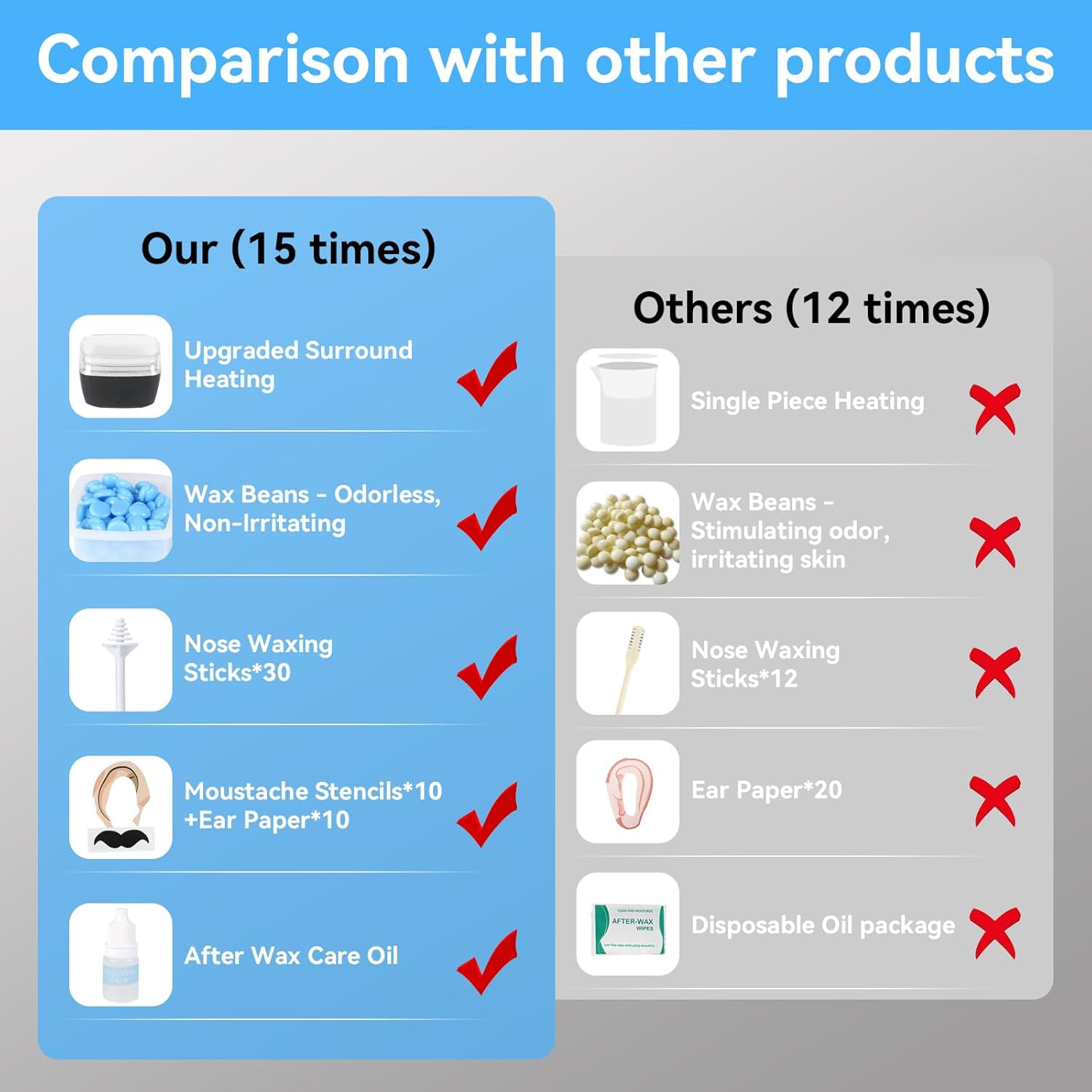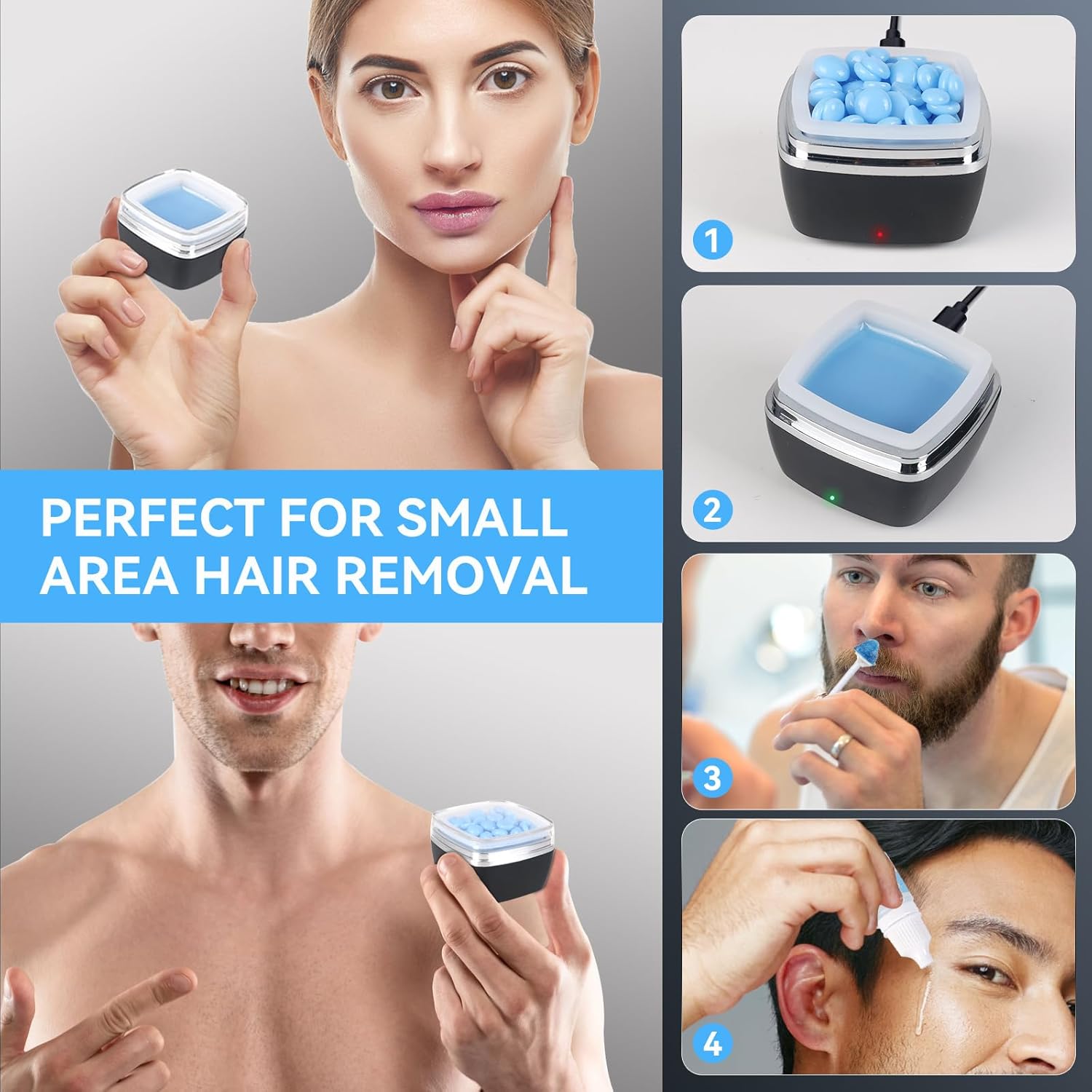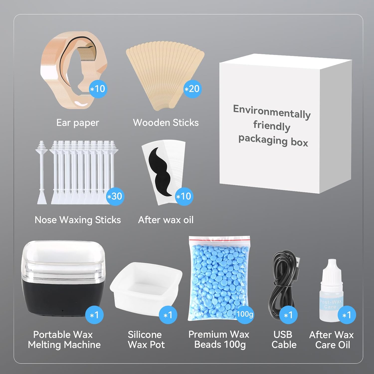 – Includes Mini Wax Warmer, Wax, Applicators, Nose Hair Sticks, Mustache Protectors, Ear Protectors, and Post Wax Care Oil