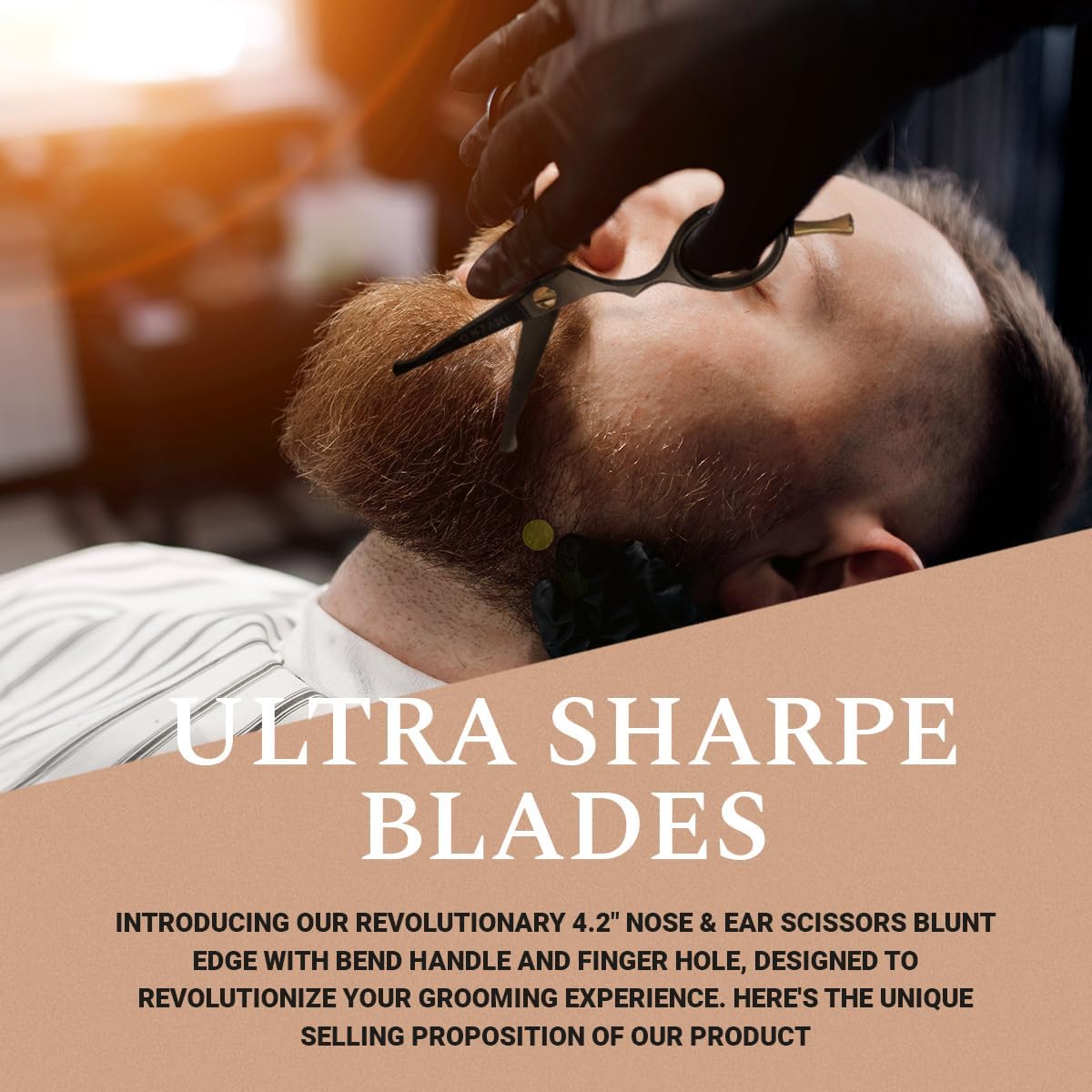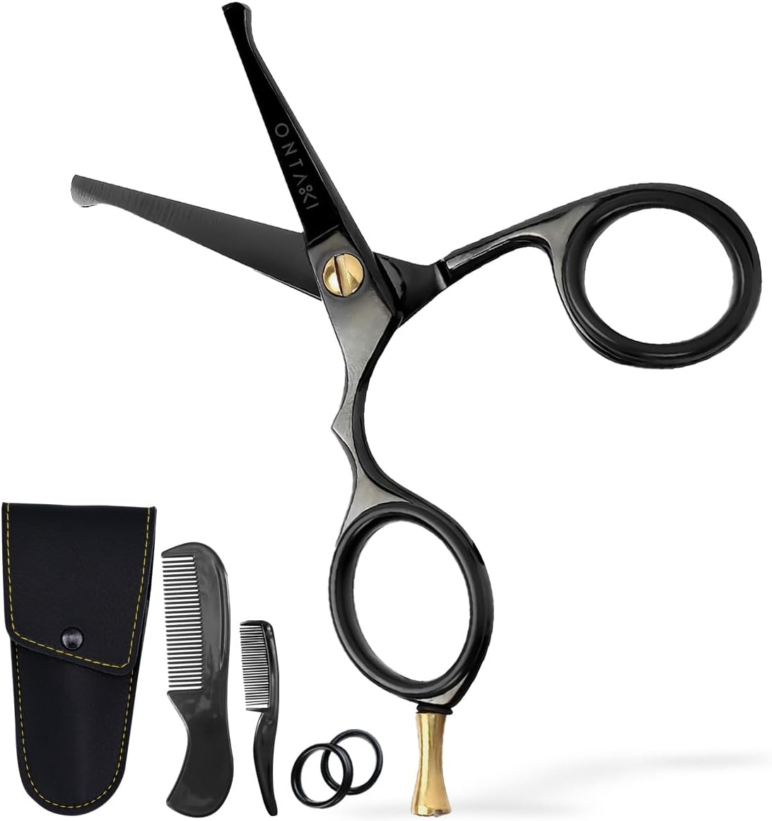 Ontaki Mustache Scissors – 4.2″ Black Japanese Steel – Beard & Nose Hair Trimming Scissors for Men – Rounded Tip Ergonomic Handles – Hand-Forged Mustache Grooming Kit