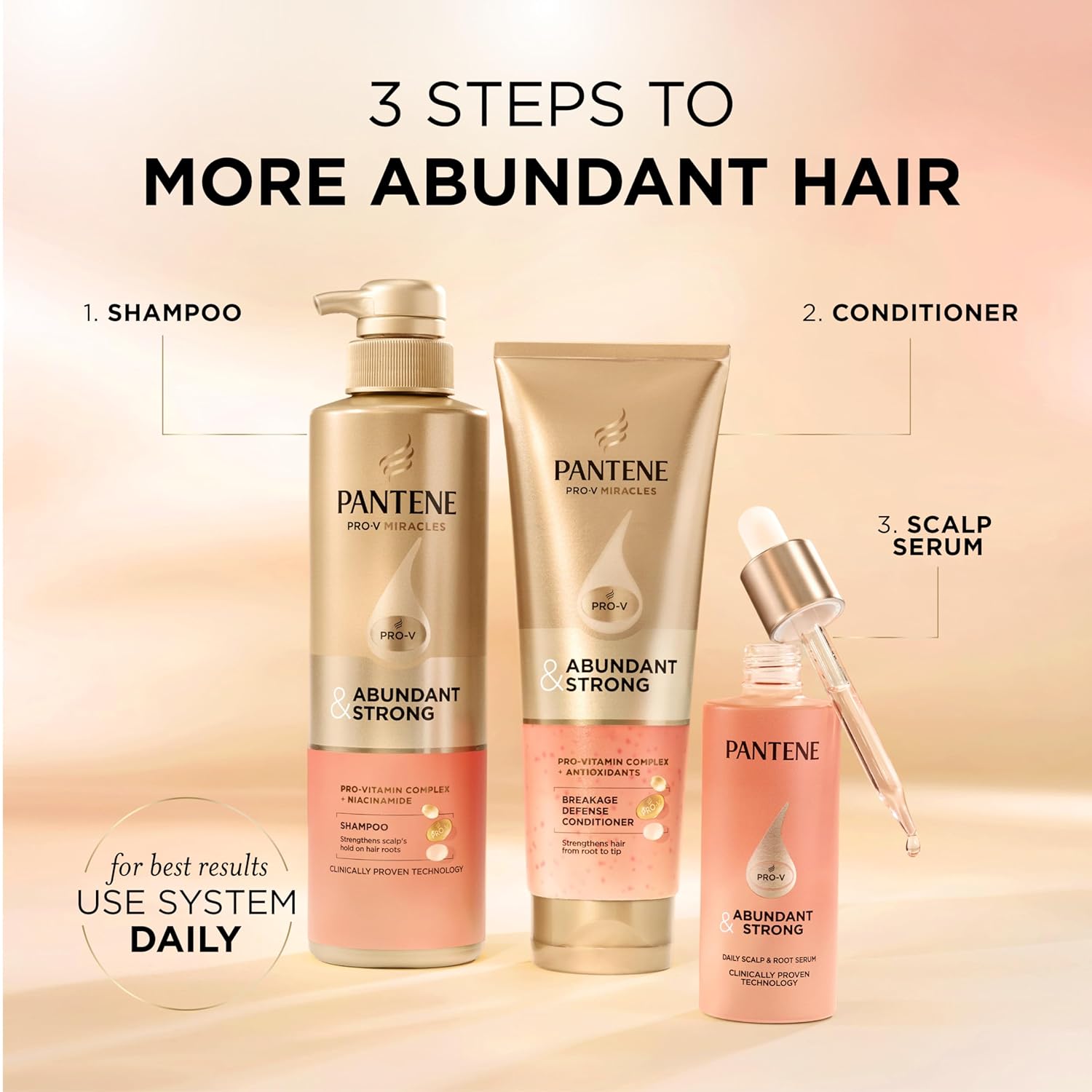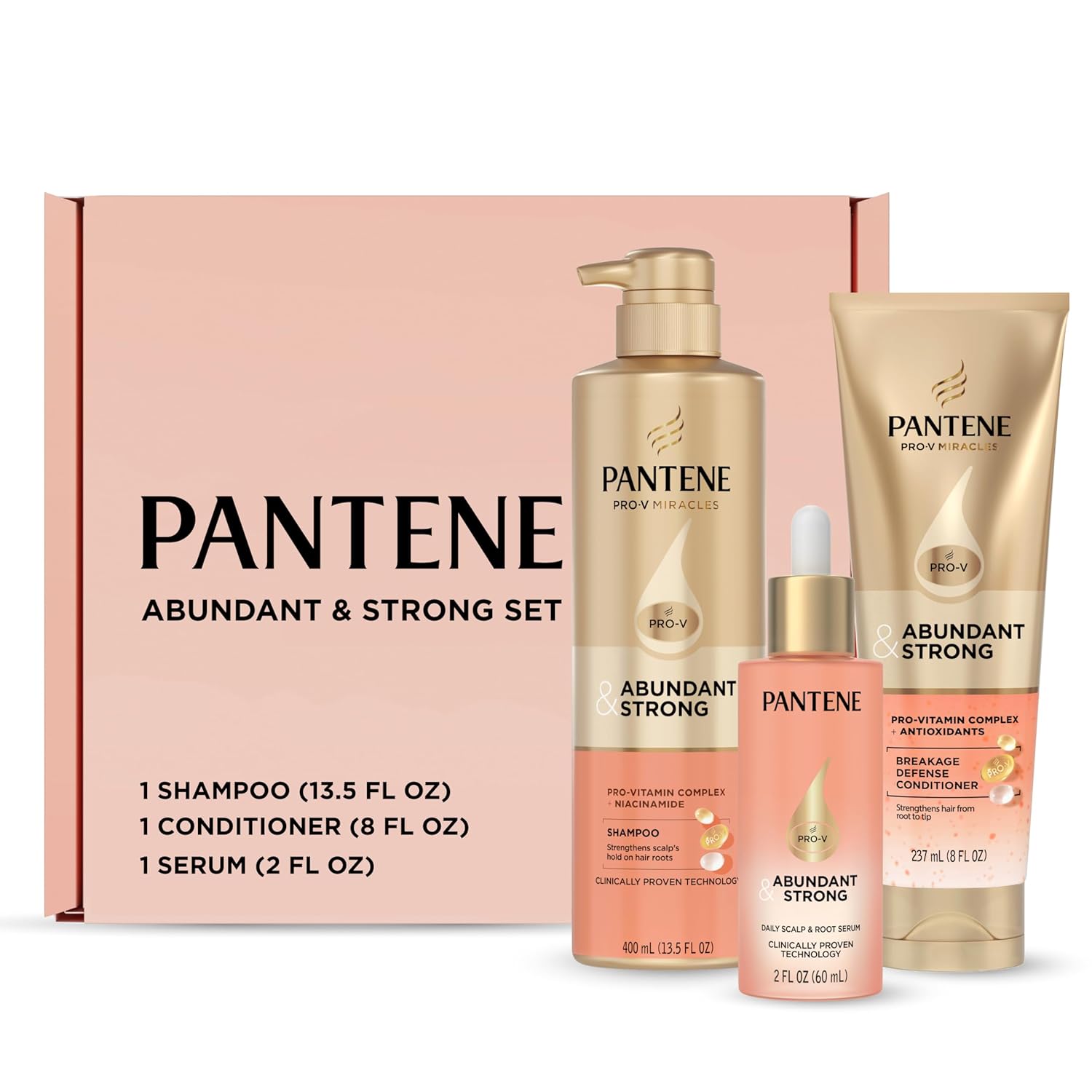 Home Hair Care Products Pantene Abundant & Strong 3-Piece Regimen with B5 Complex + Niacinamide, Shampoo (13.5 oz), Conditioner (8 oz), Serum (2 oz) for Hair Loss, Thinning, Anti-Breakage, Volume – Grows Healthier