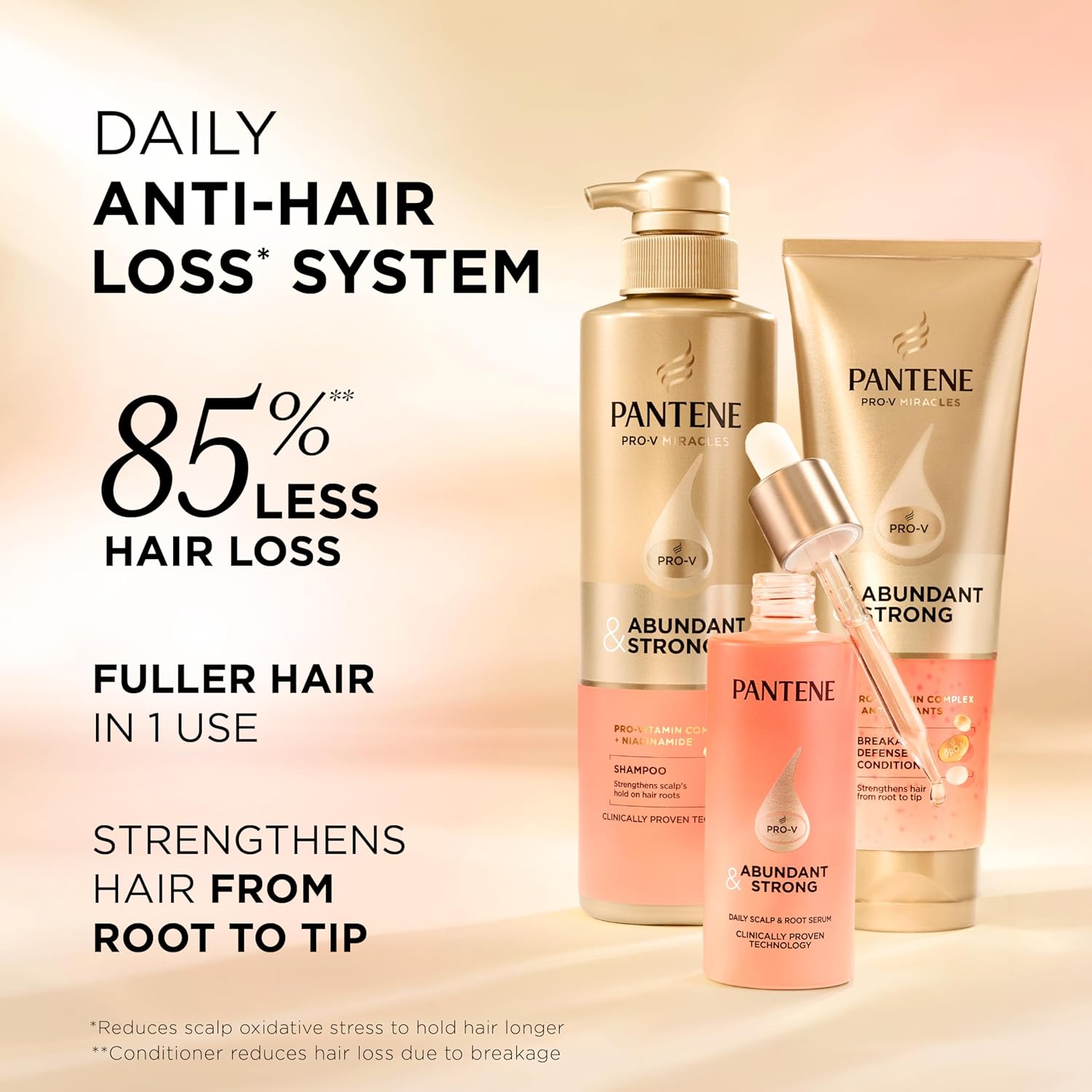 Pantene Abundant & Strong 3-Piece Regimen with B5 Complex + Niacinamide, Shampoo (13.5 oz), Conditioner (8 oz), Serum (2 oz) for Hair Loss, Thinning, Anti-Breakage, Volume – Grows Healthier
