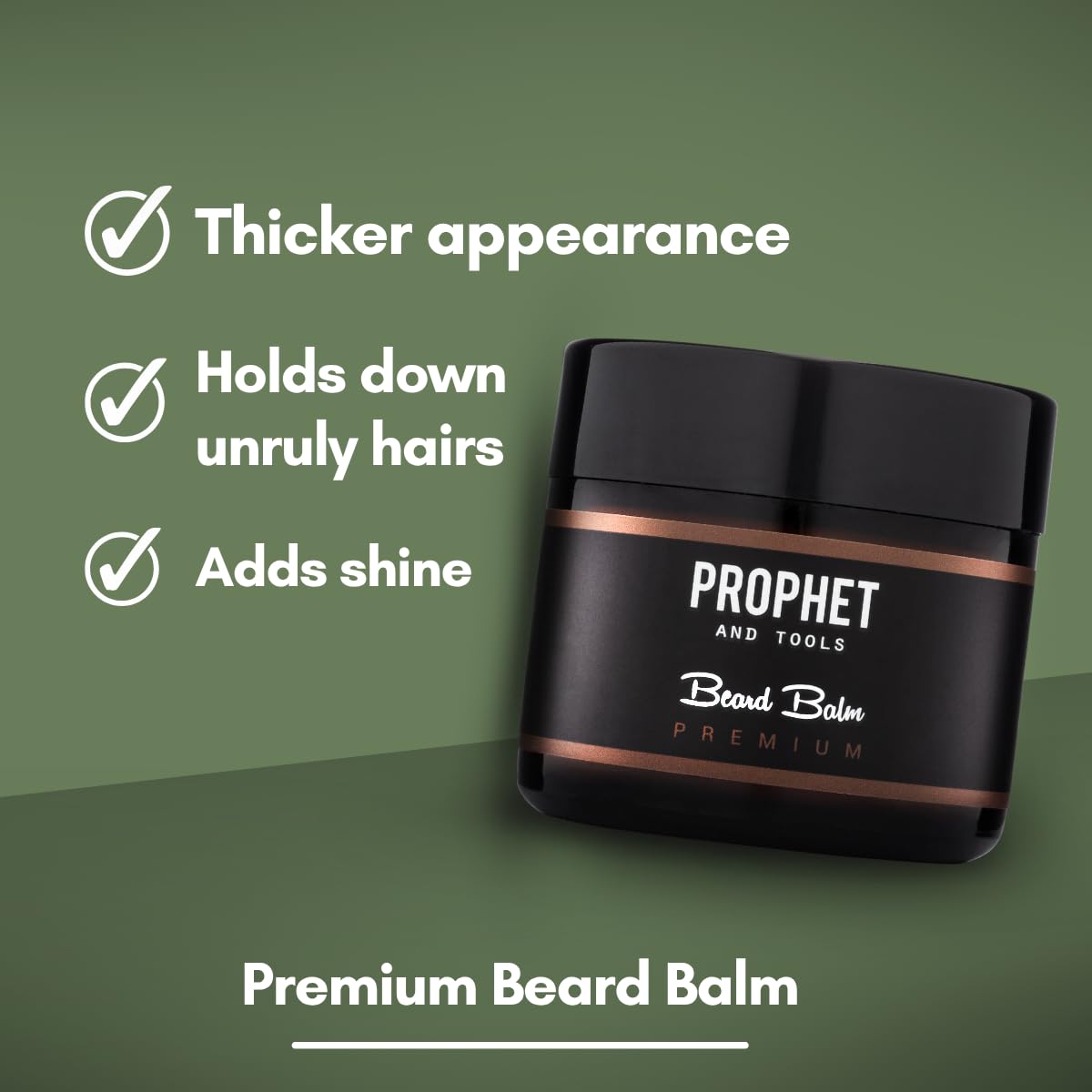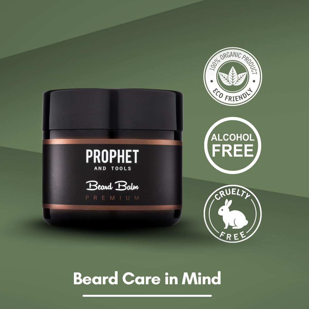 Home Beard Balm Prophet and Tools Organic Beard Balm – 12-Hour Hold for Styling, Enhances Thicker Beard Appearance, Moisturizes & Relieves Itch, Reduces Flaking, Suitable for All Hair Types – 2.1 oz