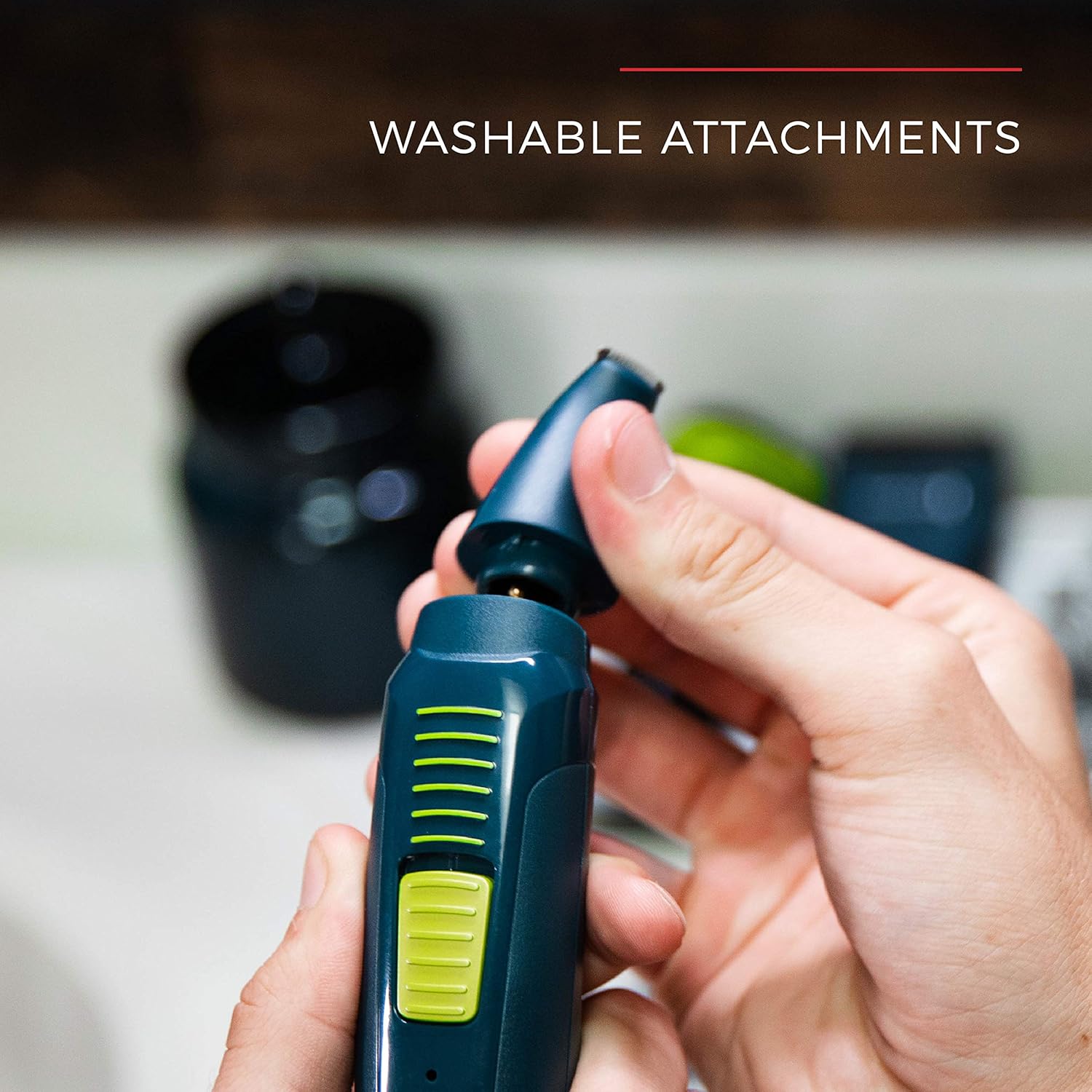 • Trimming attachments include full-size trimmer, detail trimmer, and nose and ear hair trimmer