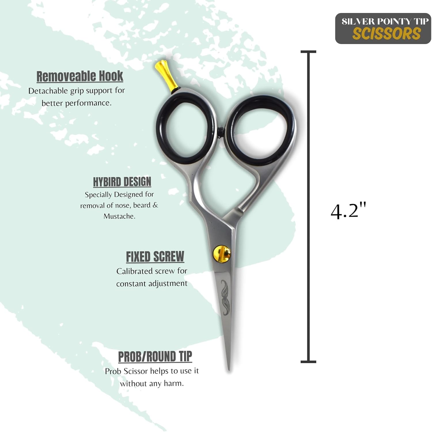 Rounded-Tip Trimming Scissors for Men – Stainless Steel High Carbon Beard, Mustache, and Ear Hair Grooming Scissor (Silver-Pointy-Tip)