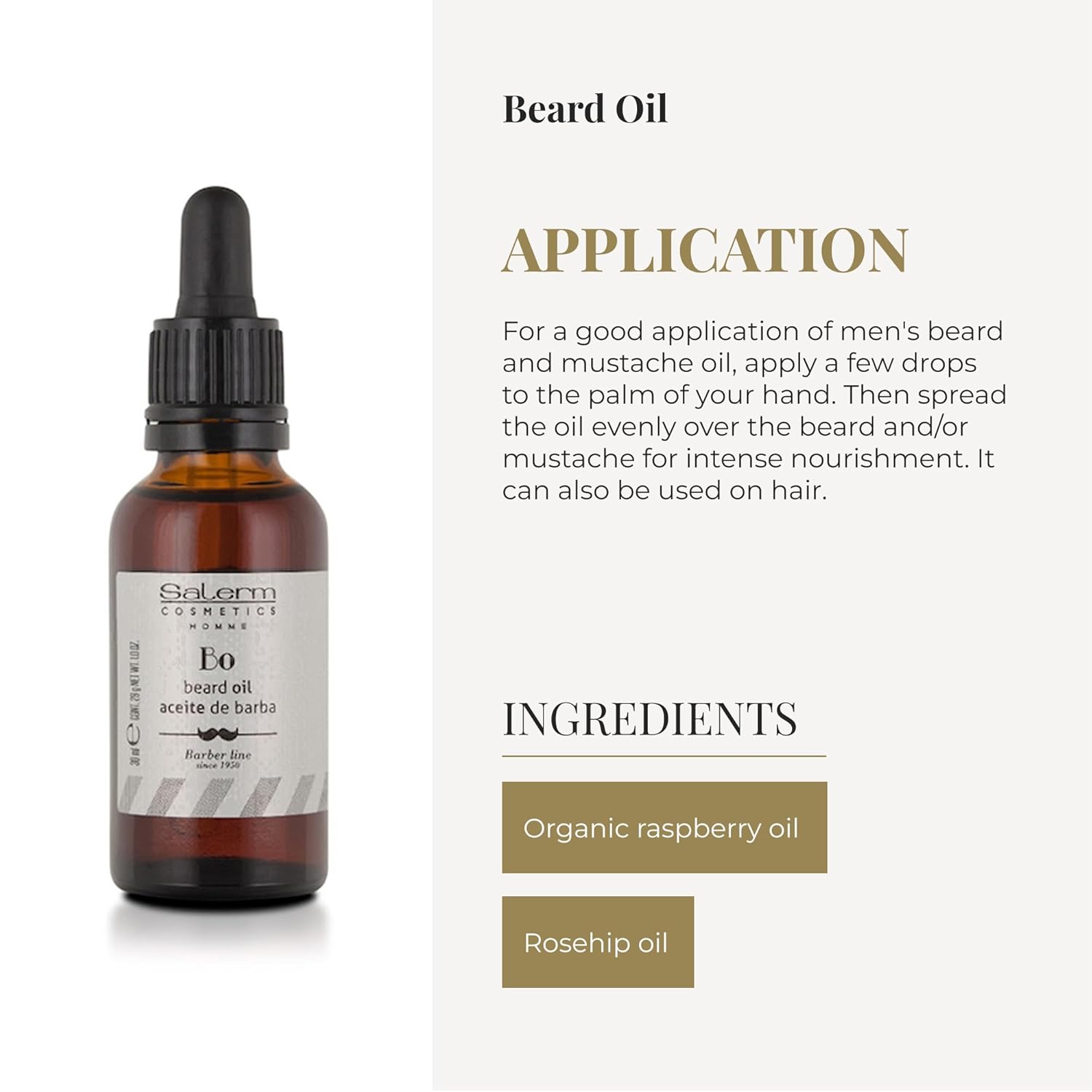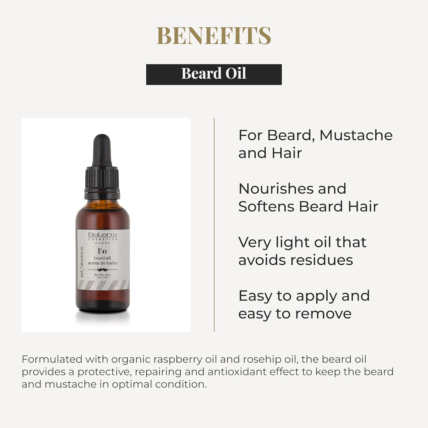 Home Beard OIl SALERM – Beard Oil for Men – Homme Barber Line – 30 ml – with Organic Raspberry Oil and Rosehip – for Beard, Mustache, and Hair – Nourishes and Softens Beard Hair