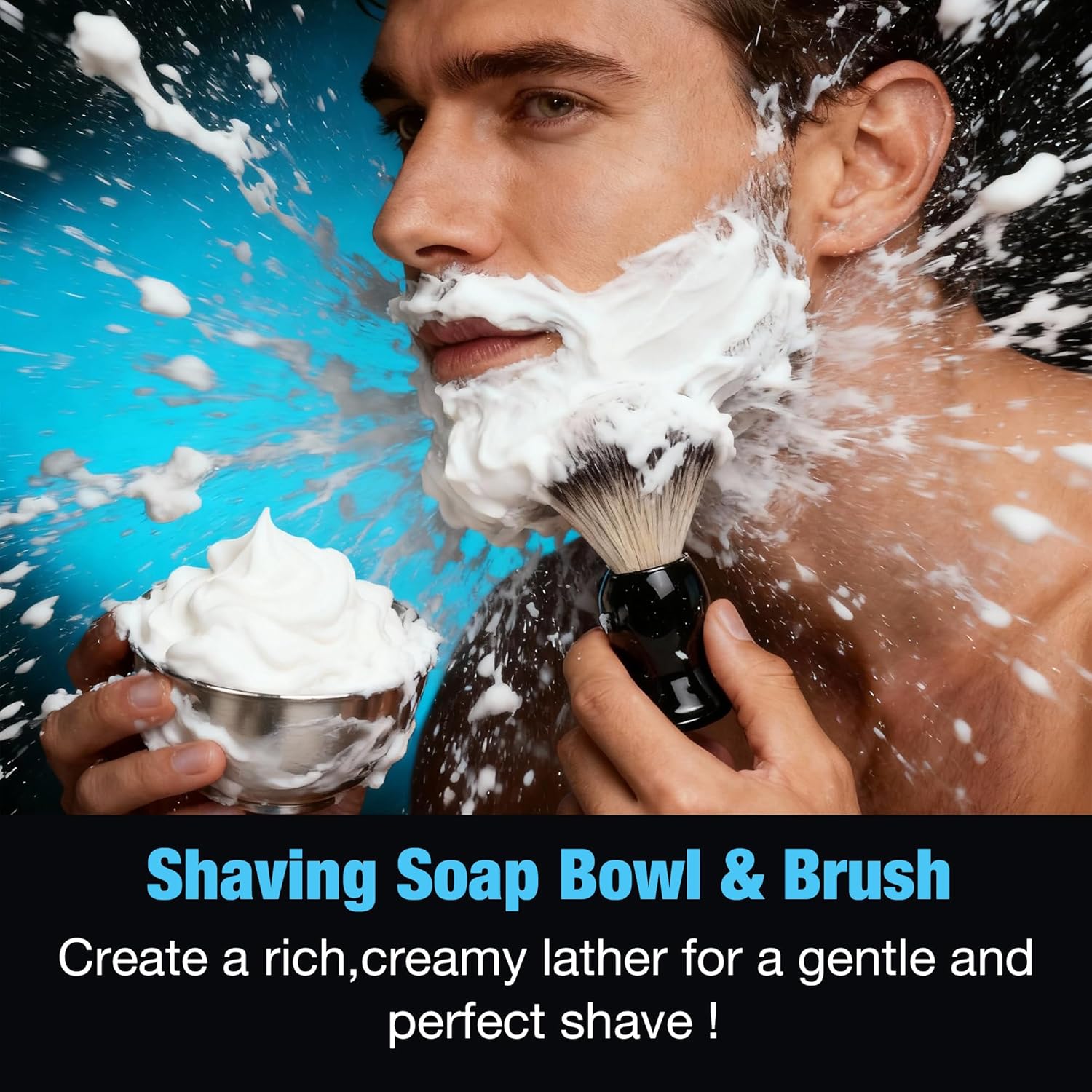 – Includes 2-in-1 Shaving Cream & Face Wash, After Shave Balm, Shaving Soap Bowl, Brush, Razor, and Coffee Tumbler