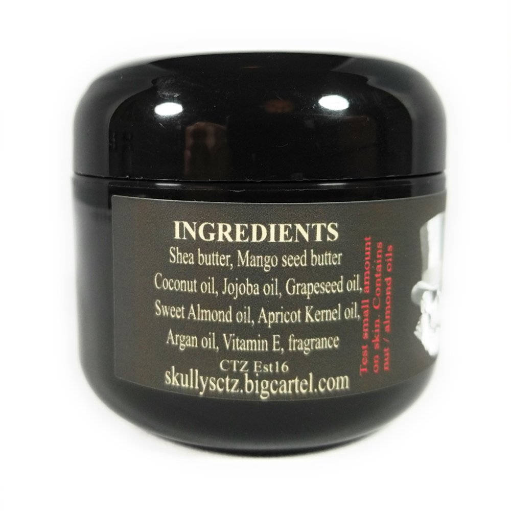 Skully’s beard & body all-in-one conditioning butter is a versatile product that instantly hydrates your beard and skin. With a deep conditioning formula enriched with 100% all-natural oils and butters, this product helps promote a soft, thick-growing beard and healthy skin. It can also be used to alleviate dry skin on your hands, body, and even to keep your tattoos moisturized and vibrant.