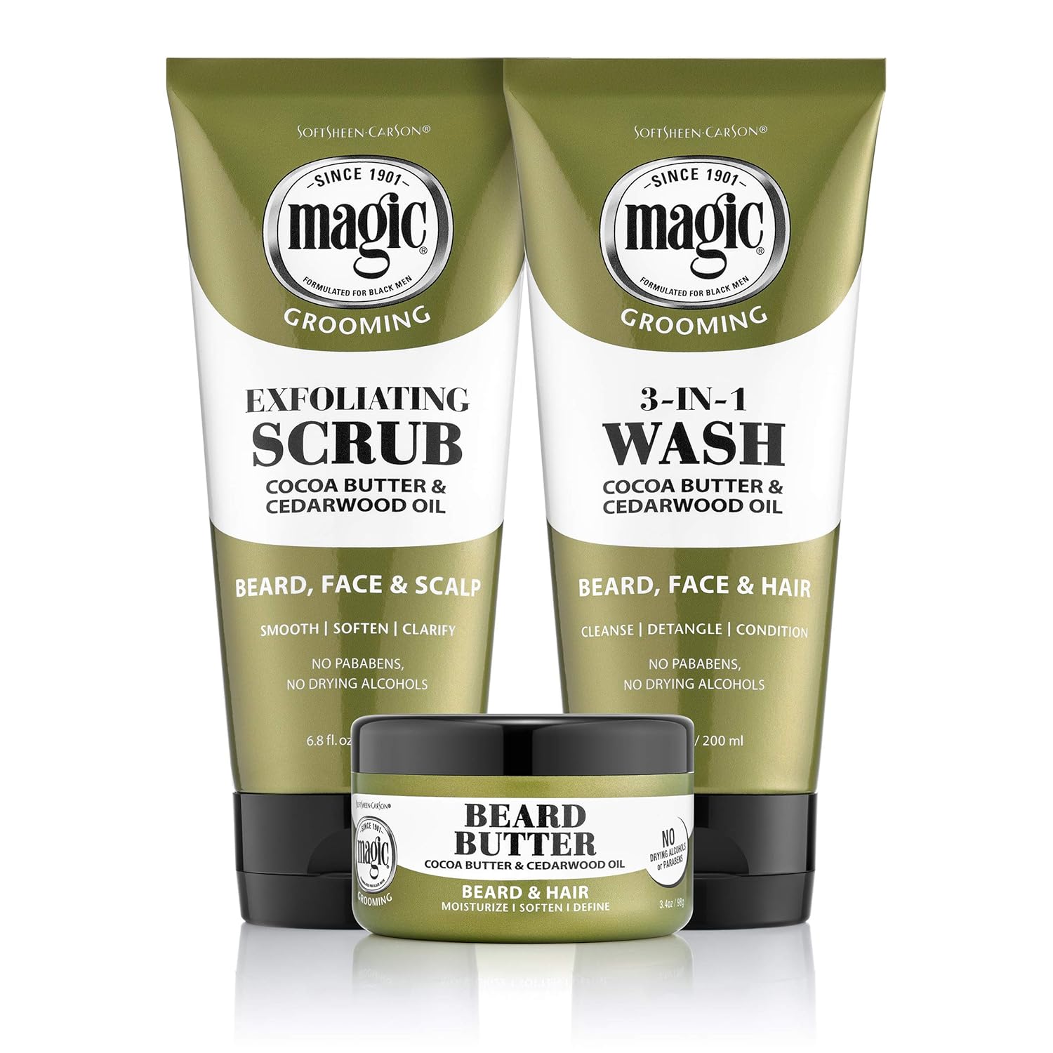 SoftSheen-Carson Magic Beard Wash 3 In 1 Cleanses and Conditions for Face, Beard and Hair, With Cocoa Butter and Shea Butter, 6.8 fluid ounces