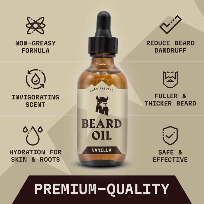 Home Beard OIl Striking Viking Vanilla Beard Oil for Men – Naturally Derived Conditioner with Argan & Jojoba Oils for Softening, Moisturizing and Growth (2 Oz)