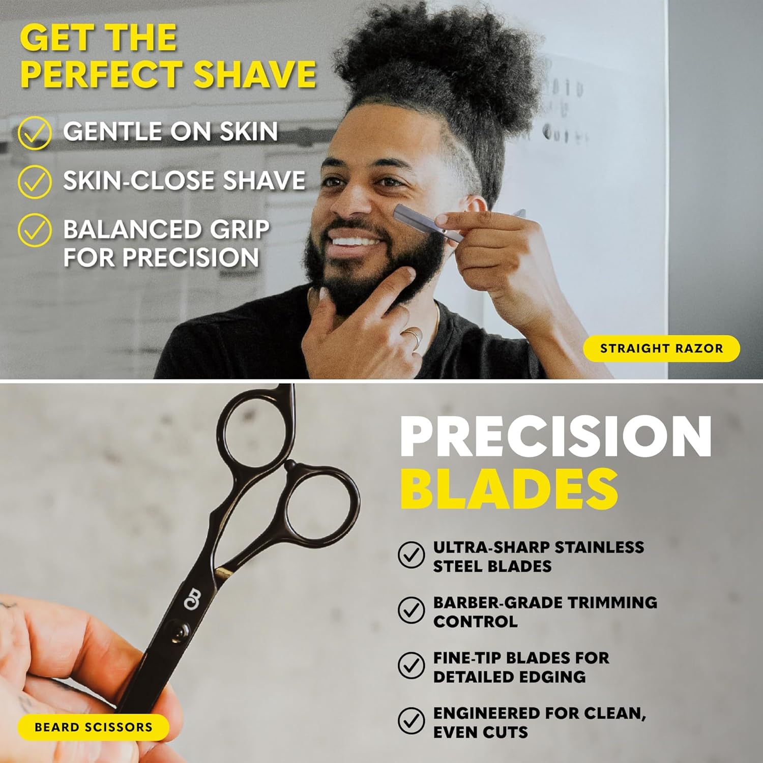 For external use only’s beard grooming kit is a game-changer for anyone looking to elevate their grooming routine. The derma roller with titanium-coated needles is durable and effective for stimulating hair growth. The beard growth oil and vitamins nourish and strengthen the beard, while the balm and conditioner keep it soft and manageable. The straight razor and scissors provide precision for shaping and trimming, and the shampoo and comb complete the kit for a well-rounded grooming experience.