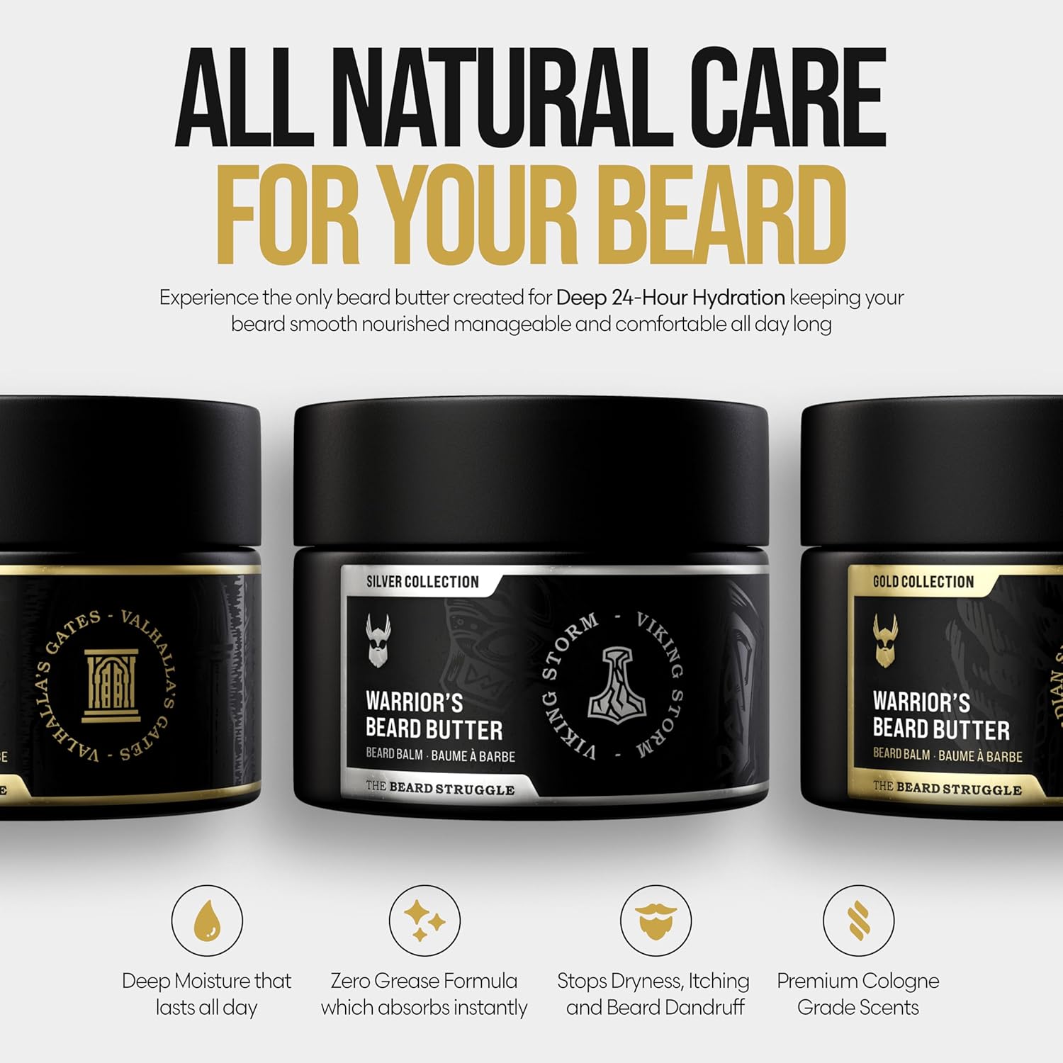 The Beard Struggle Warrior’s Beard Butter Viking Storm – Silver Collection – Handcrafted with Non-Greasy Low-Hold Formula, Luxurious Cologne-Grade Fragrances – 50g / 1.76 US. oz. Warrior-Glass Jar