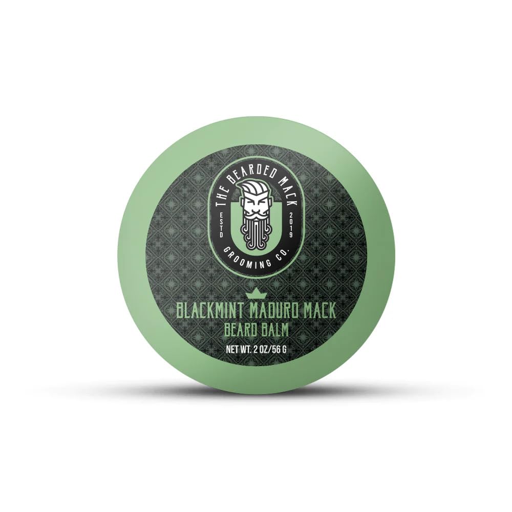 The Bearded Mack Beard Balm, Blackmint Maduro (Warm Tobacco, Black Tea & Mint) – 2oz | Firm Hold, Non-Greasy Conditioning, Tames Flyaways, Nourishes Beard & Skin