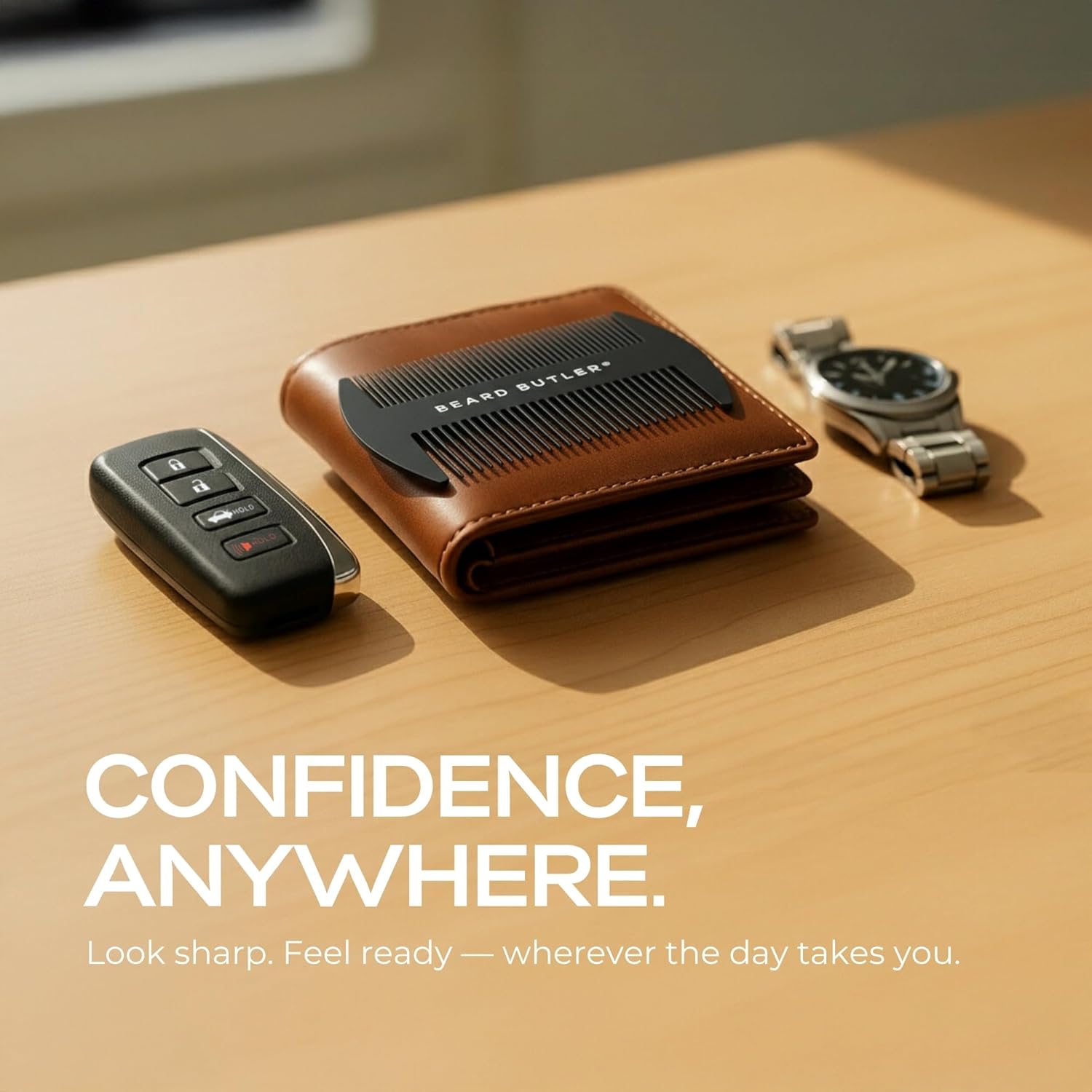 ‘The Original’ Metal Wallet Comb – Slim Credit Card Beard & Mustache Comb for Men – Portable Stainless Steel – Fits in Wallet or Pocket – Perfect Beard Gift – Black