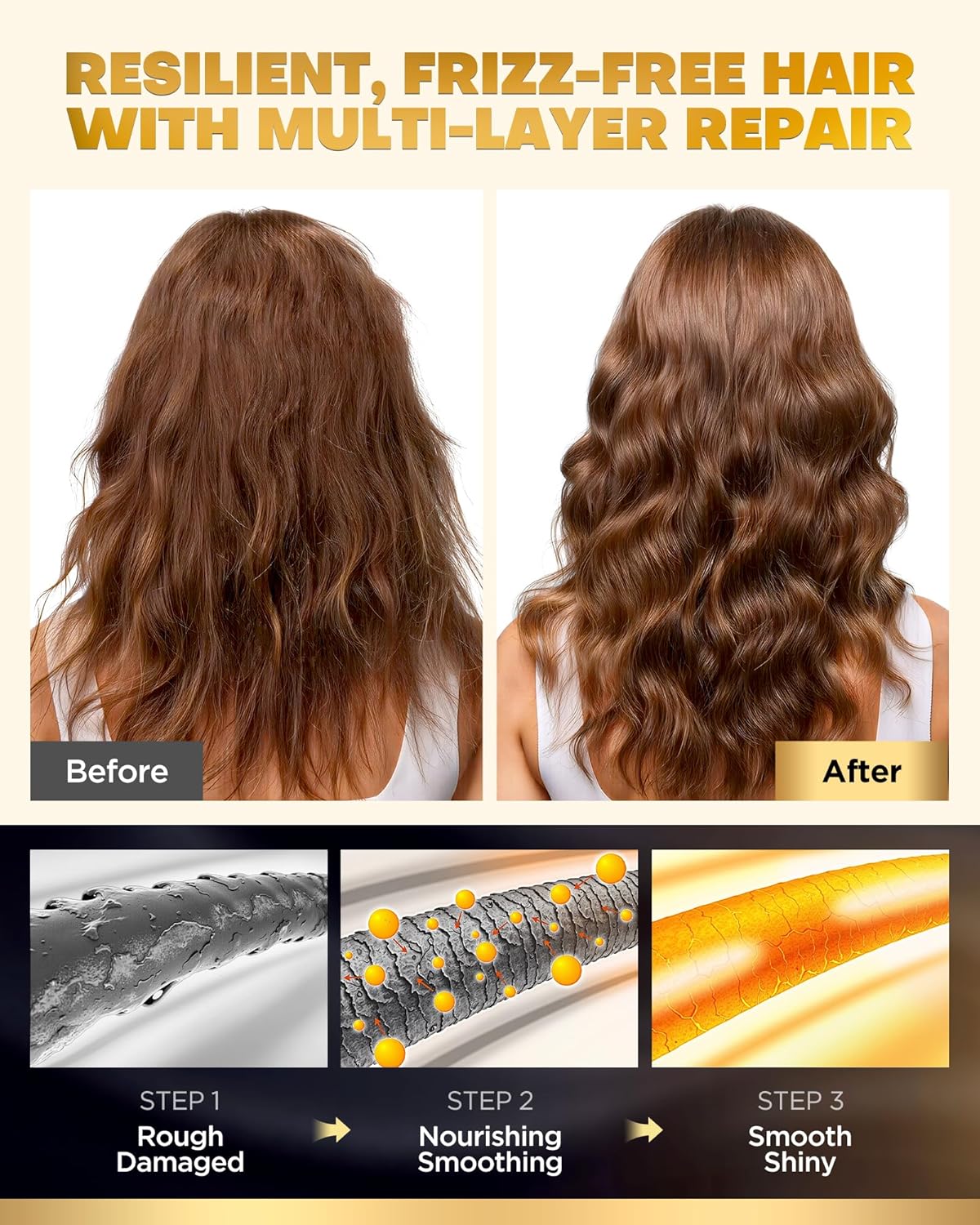 - Repairs, hydrates, and smooths hair for a salon-like finish