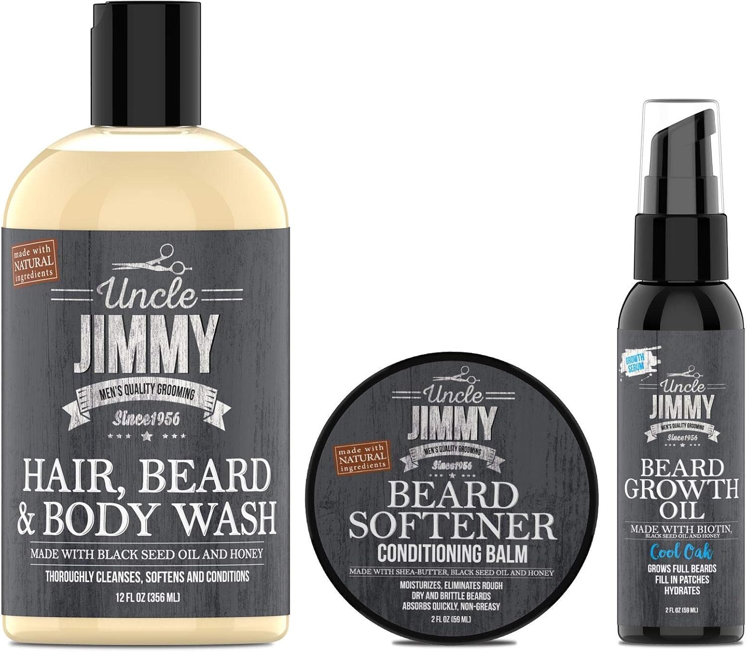 Home Beard OIl Uncle Jimmy Ultimate Beard Care Kit for Growth – Complete Grooming Regimen with Beard Wash, Beard Growth Oil, and Beard Softener.
