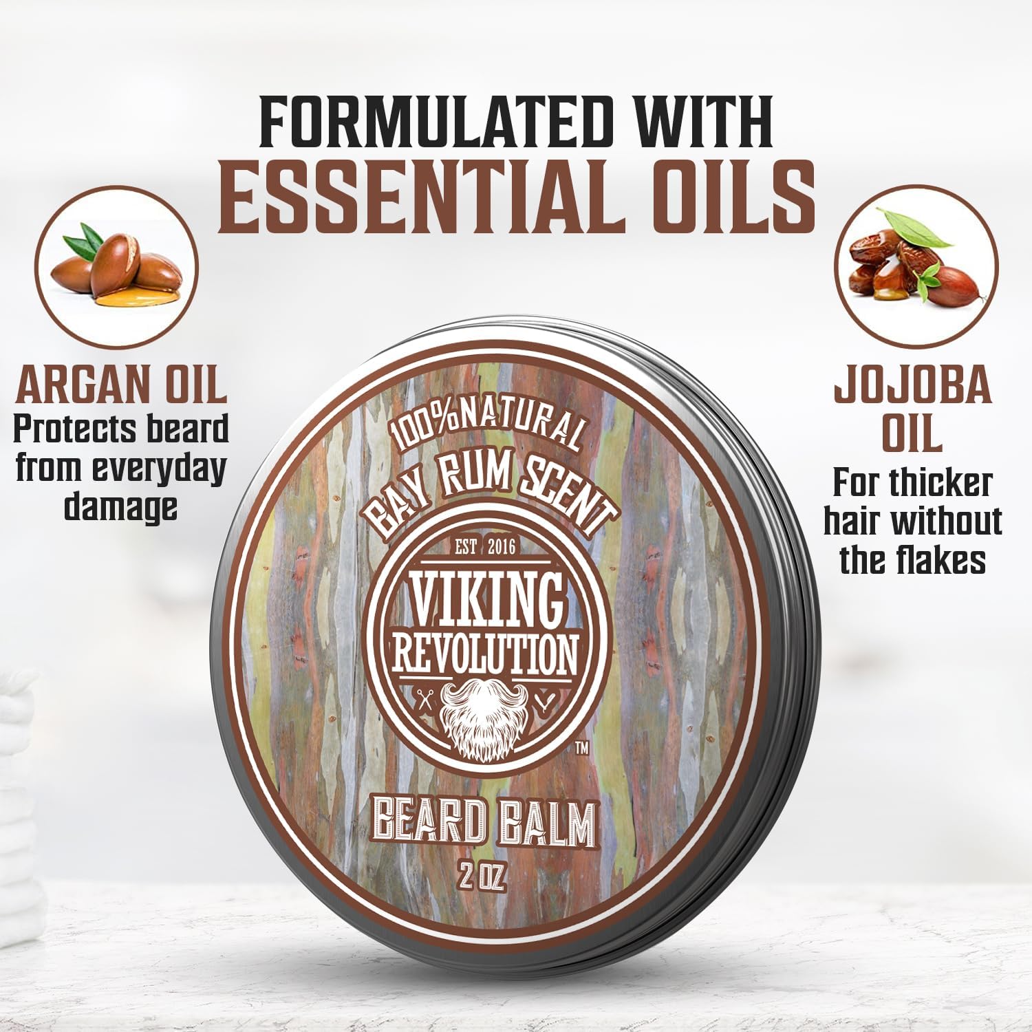 Home Beard OIl Viking Revolution Bay Rum Beard Balm for Men and Bay Rum Beard Oil Bundle – With Argan and Jojoba Oils – Soften and Moisturize your Beard