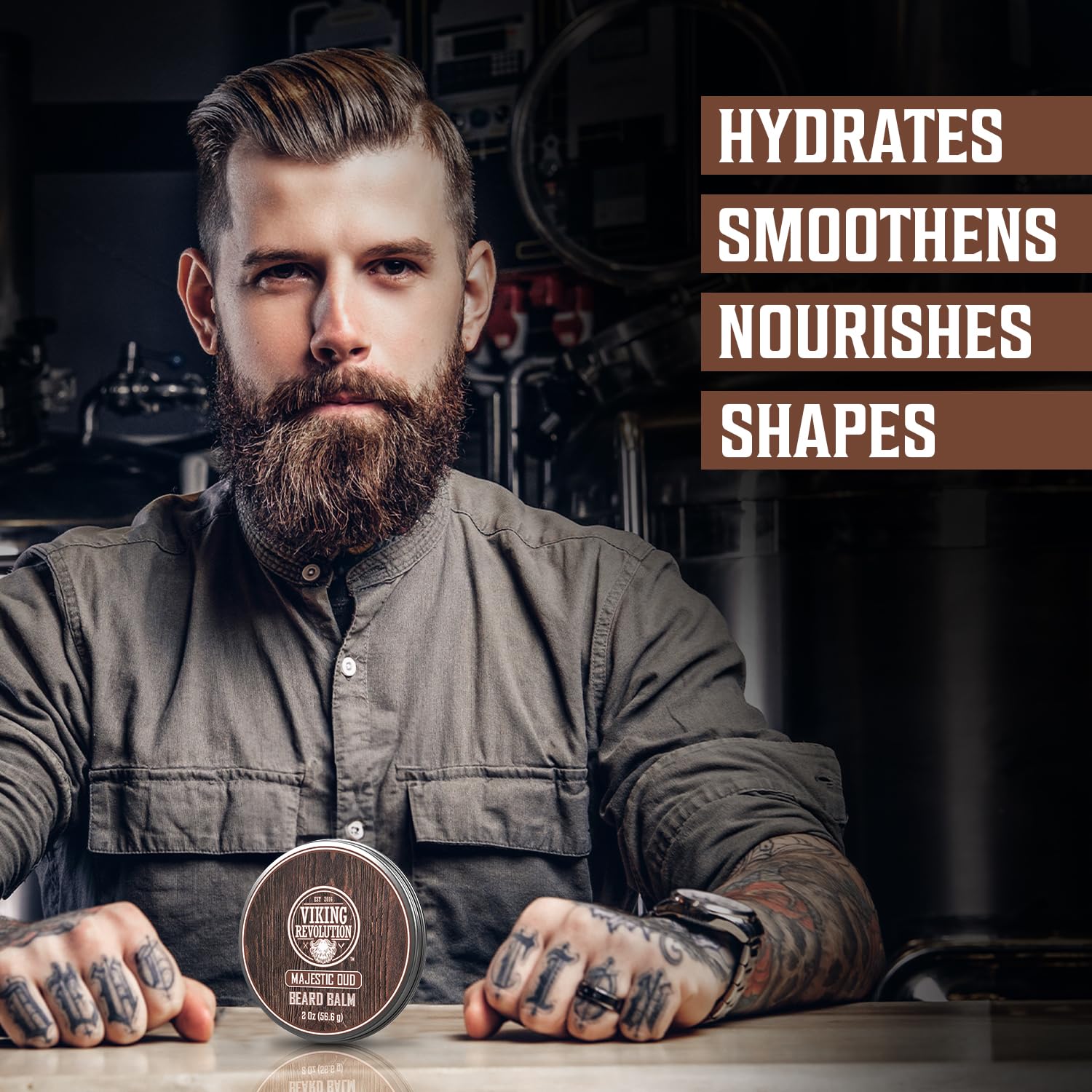 Home Beard Balm Viking Revolution Majestic Oud Beard Balm for Men and Majestic Oud Beard Oil Bundle – With Argan and Jojoba Oils – Soften and Moisturize your Beard