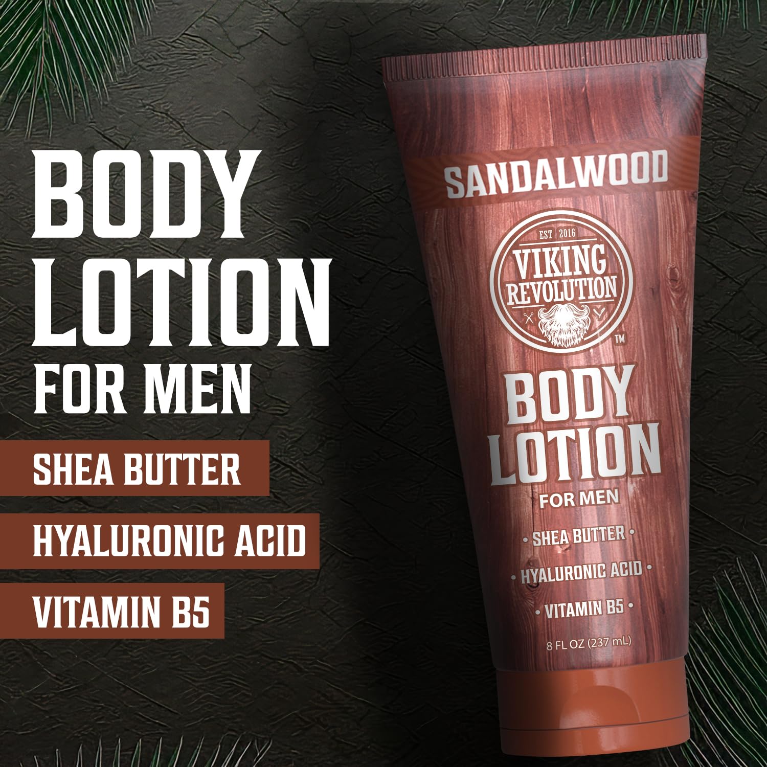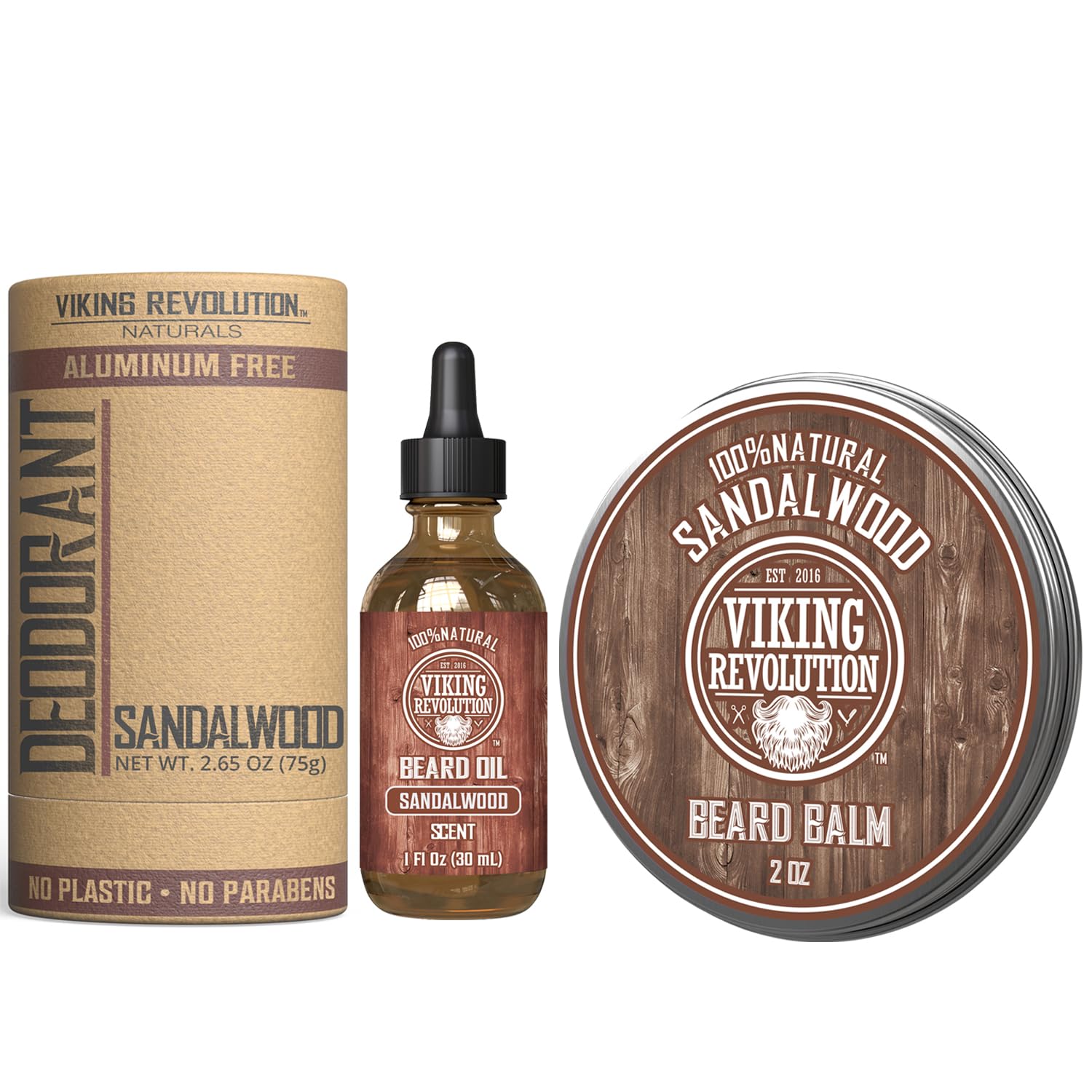 Home Beard OIl Viking Revolution Sandalwood Beard Oil, Body Lotion and Dedodorant for Men – Oil Softener and Moisturizes 1oz, Body Lotion for Hydrated and soft skin 8oz, Deodorant Men Aluminum Free 2.65oz