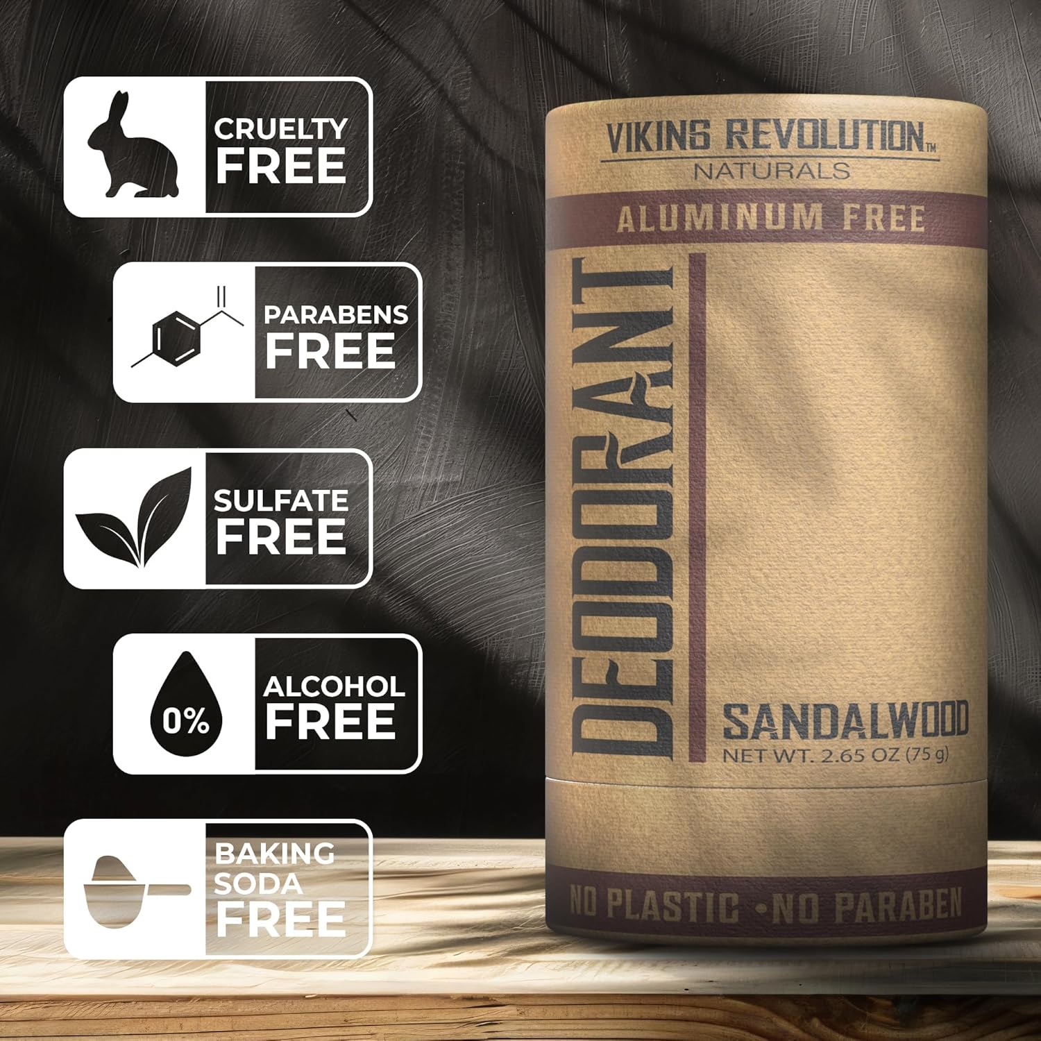Viking Revolution Sandalwood Beard Oil, Body Lotion and Dedodorant for Men – Oil Softener and Moisturizes 1oz, Body Lotion for Hydrated and soft skin 8oz, Deodorant Men Aluminum Free 2.65oz