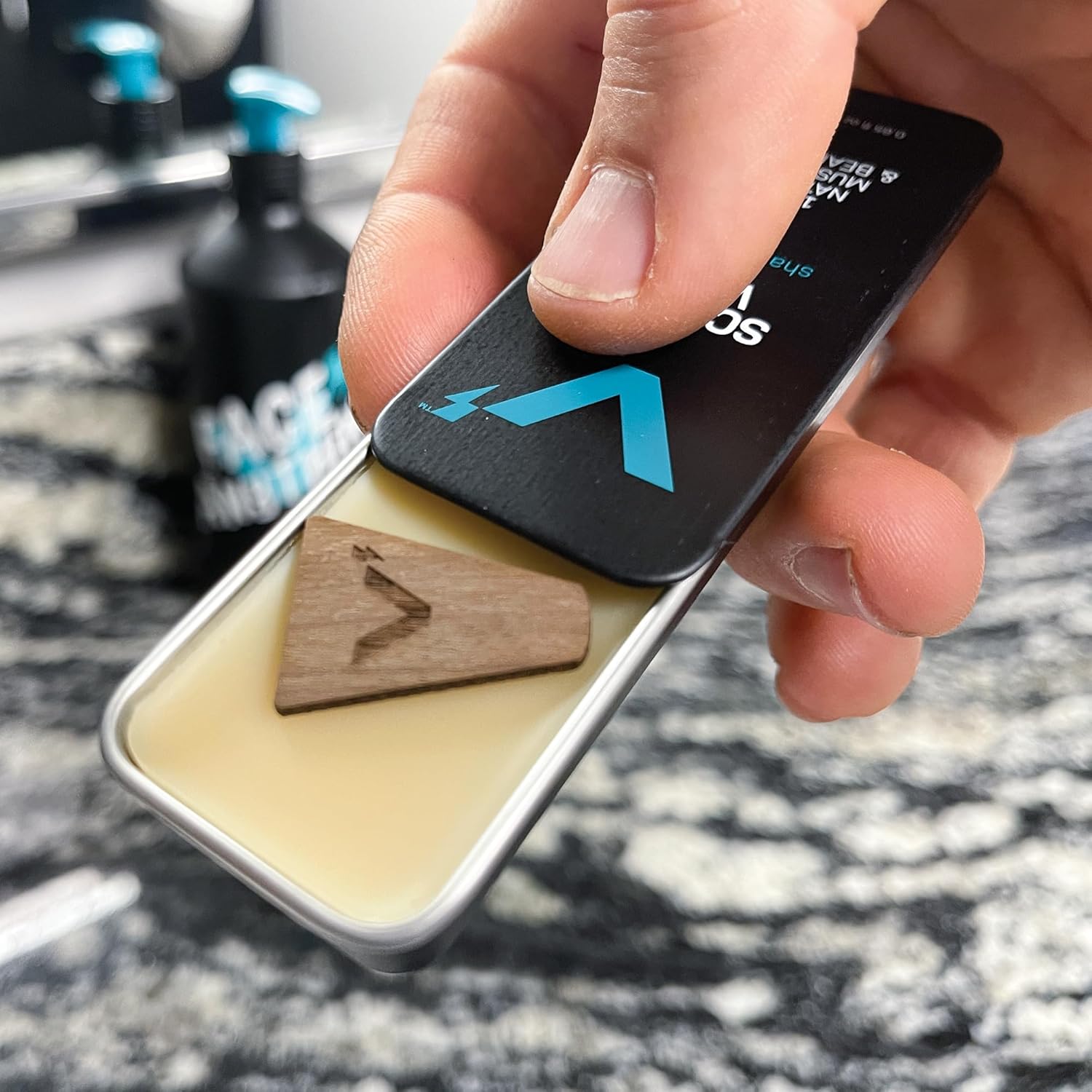 Are you looking for a natural grooming essential to style your beard and mustache with confidence? Look no further than VOLT Sculpt Wax. Made with cruelty-free, preservative-free ingredients like Beeswax, Jojoba Oil, and Pine Rosin, this wax provides a medium to firm hold to shape and tame facial hair without harmful additives. Its lightweight formula ensures a non-greasy finish, leaving your beard and mustache feeling clean and natural. The Two Peaks scent, a fresh blend of tea tree, mint, and cedar essential oils, offers a crisp, wilderness-inspired fragrance that lasts all day. Perfect for creating structured styles like handlebar mustaches, this wax comes in a 0.65 Oz (19ml) aluminum tin, complete with a walnut spatula for precise application and a cotton pouch for easy storage and travel.