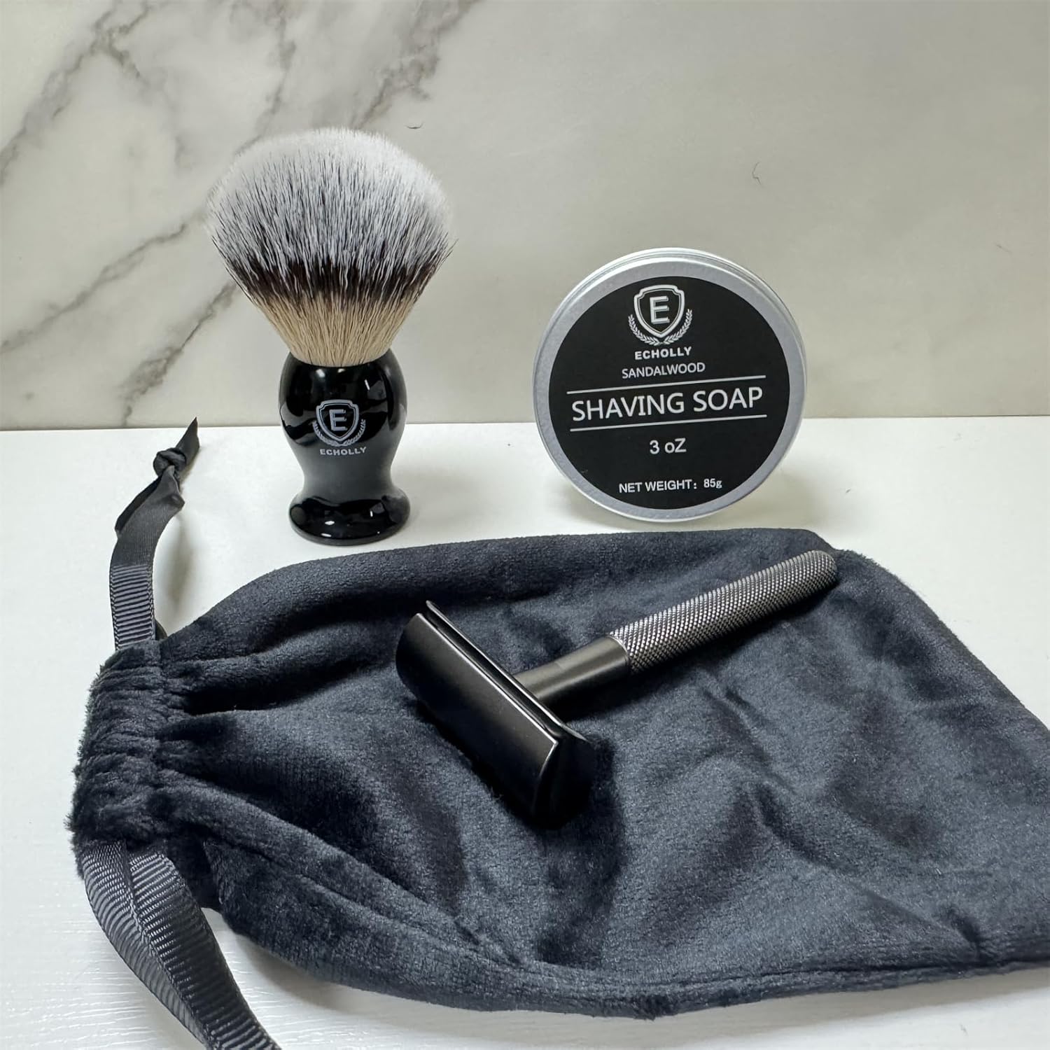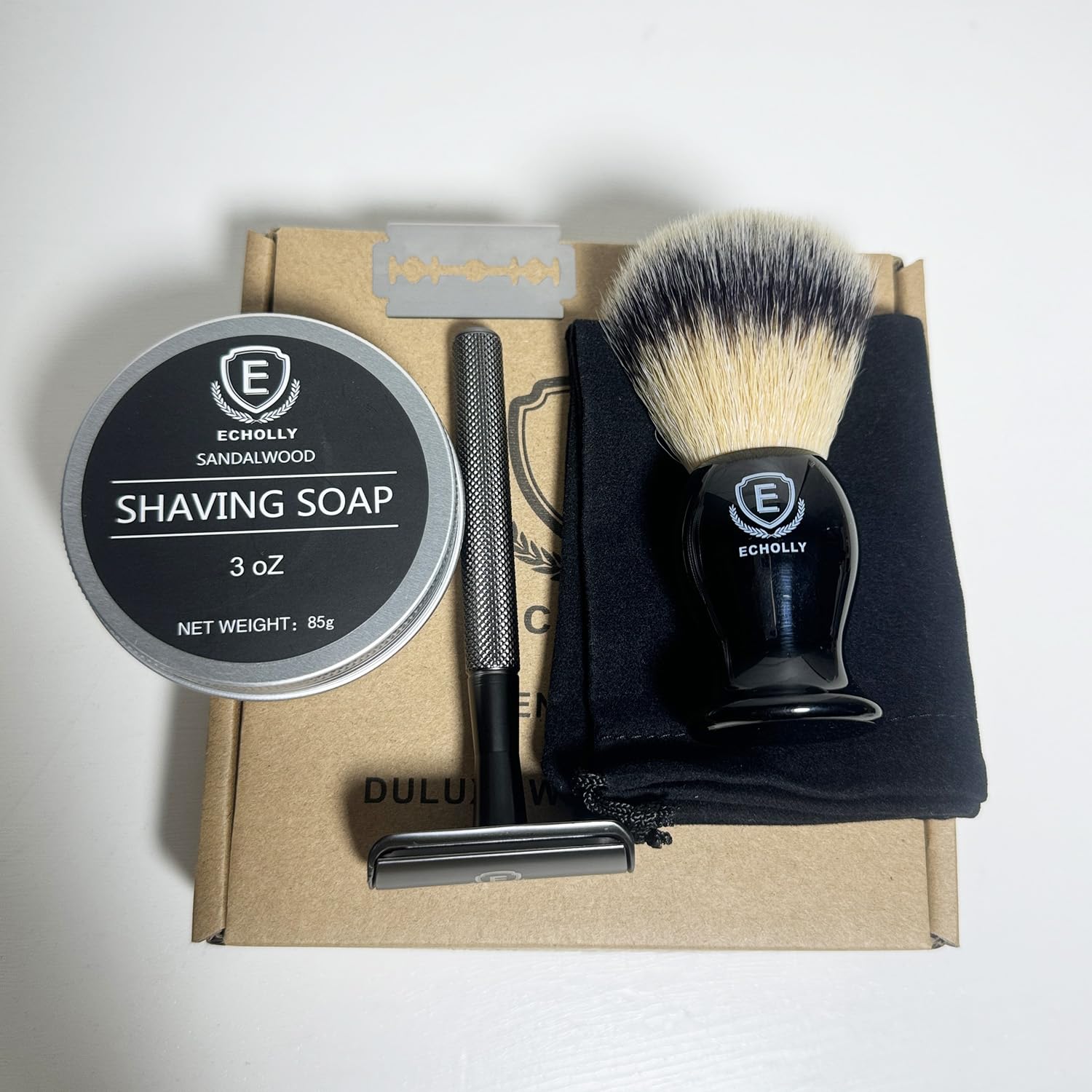 This wet shaving kit from Echolly truly delivers on its promise of a premium grooming experience. The shaving brush creates a rich lather, the sandalwood-scented soap softens facial hair, and the zinc-alloy razor provides a close and comfortable shave. The travel bag keeps everything organized, making it convenient for on-the-go use. Overall, this kit is a great investment for those looking to indulge in a luxurious shaving routine.